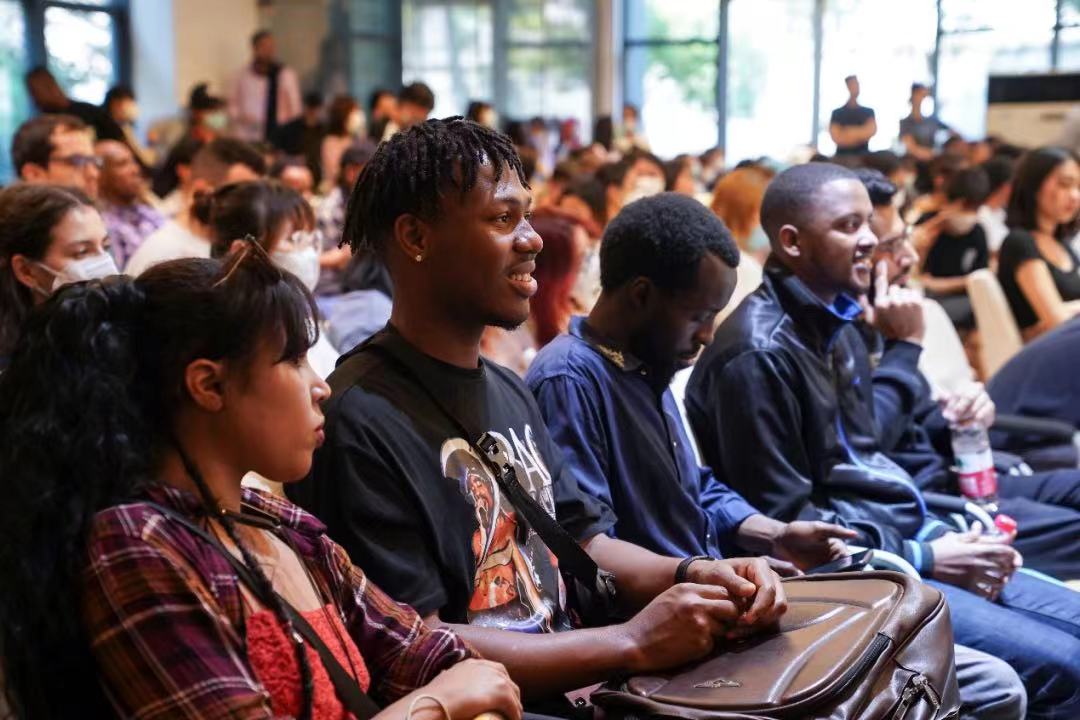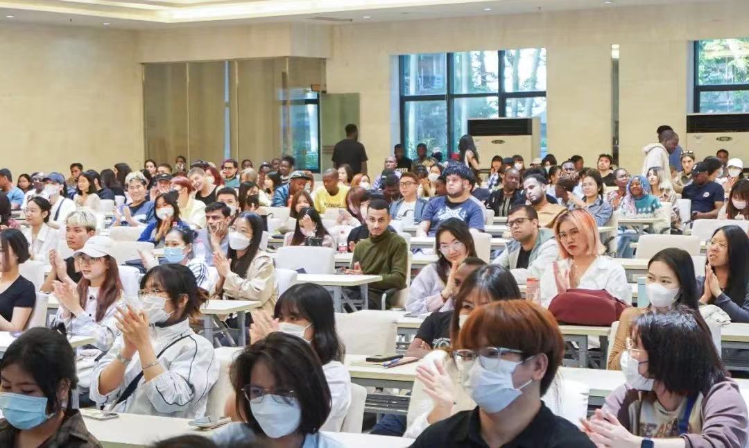 活动的最后,杨昆老师为微电影导演Agu Ernest同学的辛勤付出表示感谢并祝贺他在“看中国-外国青年影像计划”活动中获得金目奖二等奖的佳绩。全体国际学生也向在台上的专家团老师代表致以最热烈的掌声,感谢他们一直以来的热情帮助和辛勤付出。