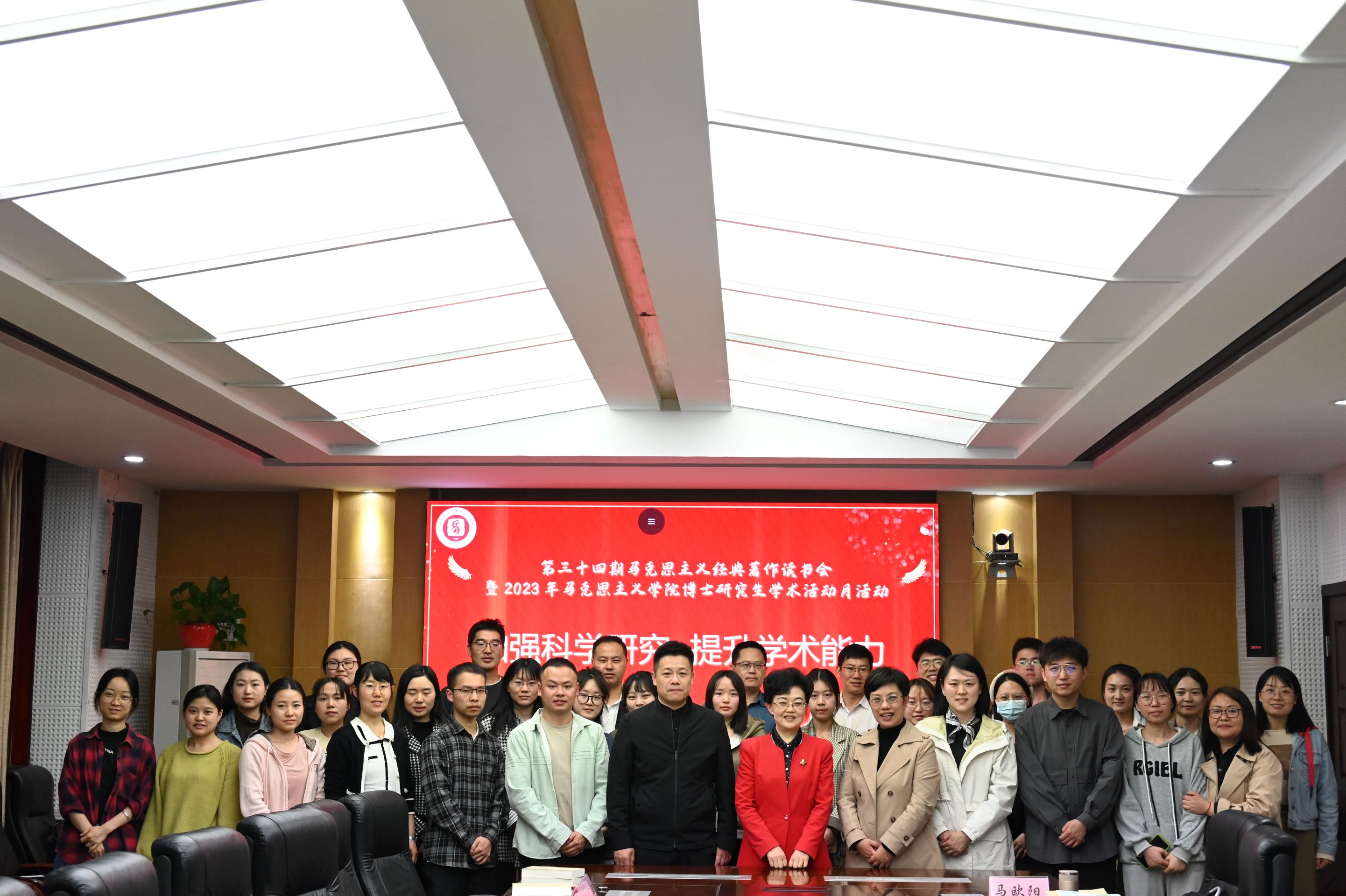 2023年4月25日晚,第三十四期“马克思主义经典著作读书会”暨2023年马克思主义学院博士研究生学术活动月活动在学院310会议室成功举办。本期读书会的主题为“加强科学研究 提升学术能力”,学术活动包括学术报告、观众提问、专家点评、师生交流、导师总结五个环节。学院黄蓉生教授、石雪教授、崔健教授,读书会全体同学以及2020级博士研究生代表、学院硕士生代表参加本次活动。活动由2019级博士研究生胡红梅主持。