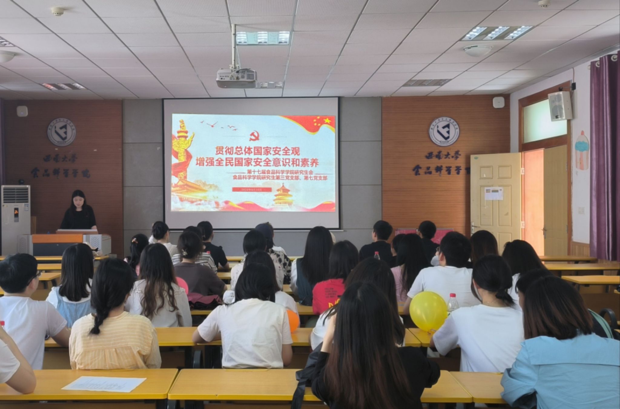 今年4月15日是第八个全民国家安全教育日,为深入贯彻落实习近平总书记关于国家安全的重要指示精神,推进国家安全体系和能力现代化,增强全民国家安全意识和素养,2023年4月15日中午12:30,食品科学学院研究生会联合我院研究生第三、第七党支部在南区樟树林举办了主题为“贯彻总体国家安全观,增强全民国家安全意识和素养,夯实以新安全格局保障新发展格局的社会基础”的宣传活动。