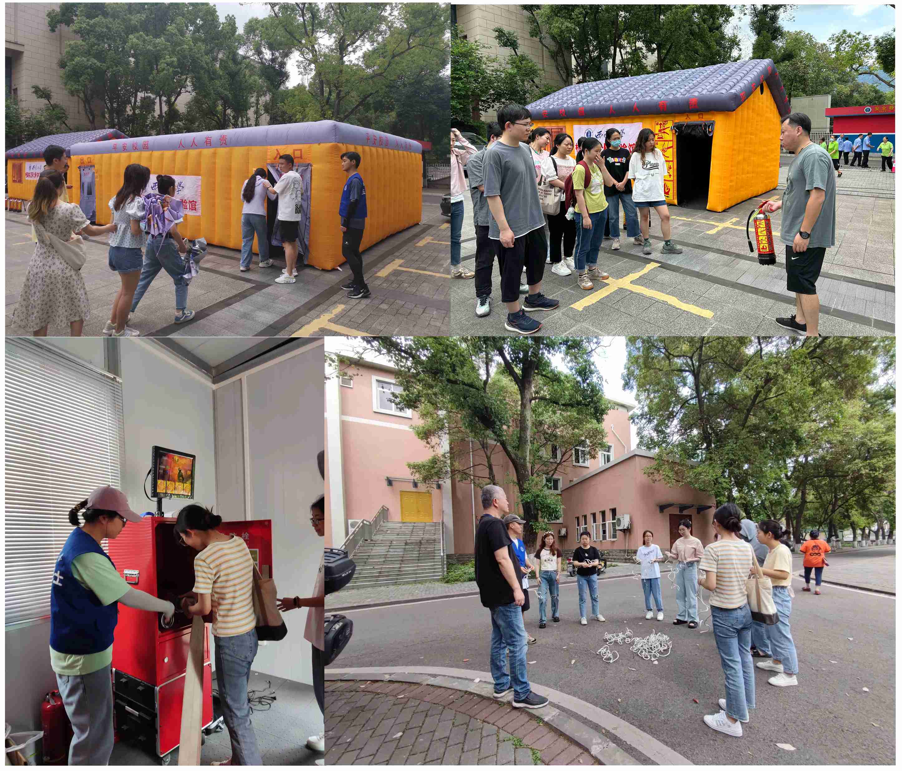 为进一步加强校园消防安全工作,切实提高广大师生的消防安全意识,提高防灾及突发事件的应急处理能力,2023年5月5日下午14:30生命科学学院于安全教育培训中心开展了消防安全演练活动。此次演练采用理论与实操相结合的方式,分为模拟烟雾逃生、模拟灭火体验、消防栓安全使用、消防安全绳结四个板块。