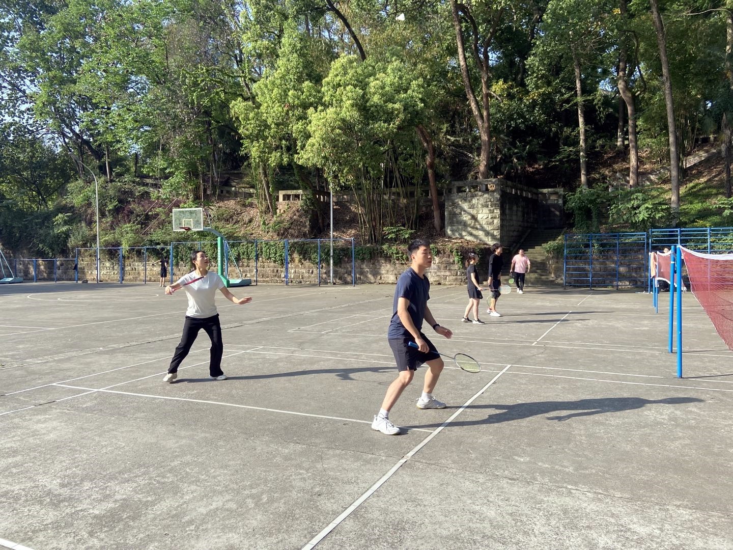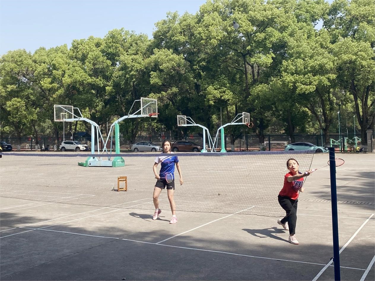 明媚的阳光下,球场内比赛进行的如火如荼,一颗颗羽毛球在空中划出一道道弧线,每位参赛选手都斗志昂扬、全力拼搏。