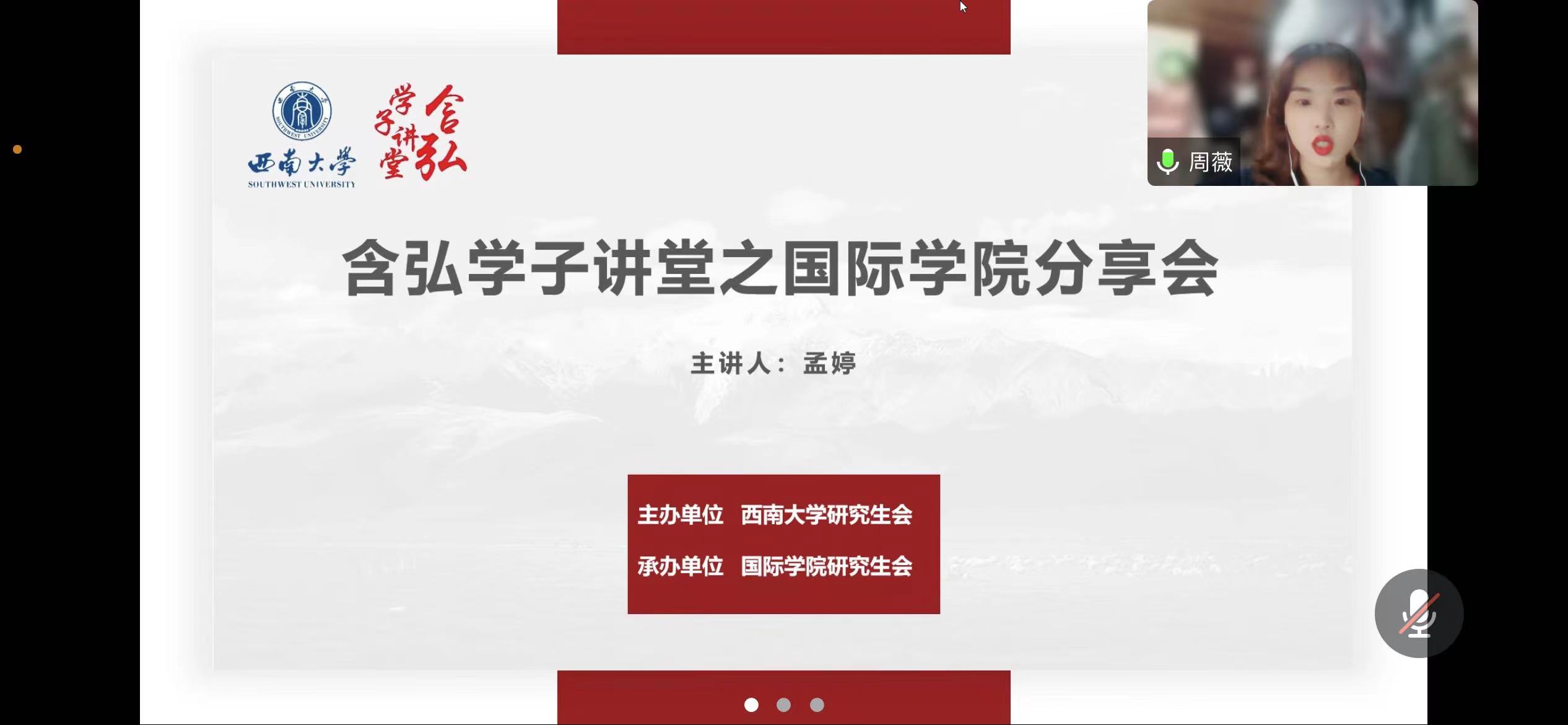 2023年4月13日及27日晚7时,两期含弘学子讲堂之国际学院读书分享会在210教室和腾讯会议同步开展。本次读书分享会共由8名2022级汉语国际教育专业硕士研究生担任主讲人,通过校研究生会代表、院研究生会代表及2022级专硕汉语国际教育班全体成员共同评分角逐出王昕、苟思齐、孟婷、周薇、龚熹雨五位表现优秀者。