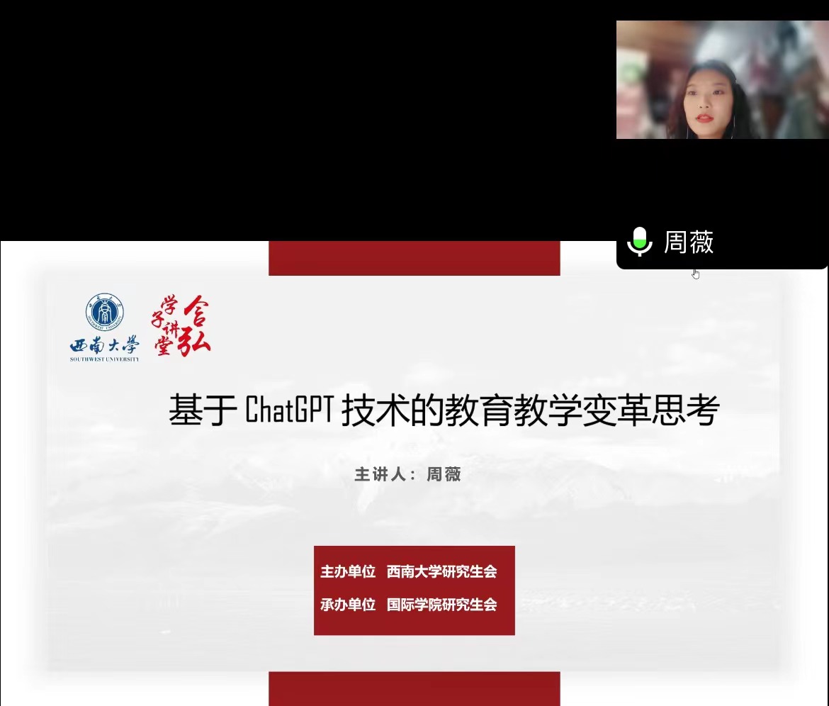 周薇同学以ChatGPT技术为窗口,分析其对教育教学变革的思考。首先从ChatGPT的概念及相关技术支持出发。再分析其在人才观、课程观、教学观和评价观四个角度给教育带来的挑战。最后聚焦到教育支持系统、教育应用场景和变革可能性三个层面来讨论教育变革。