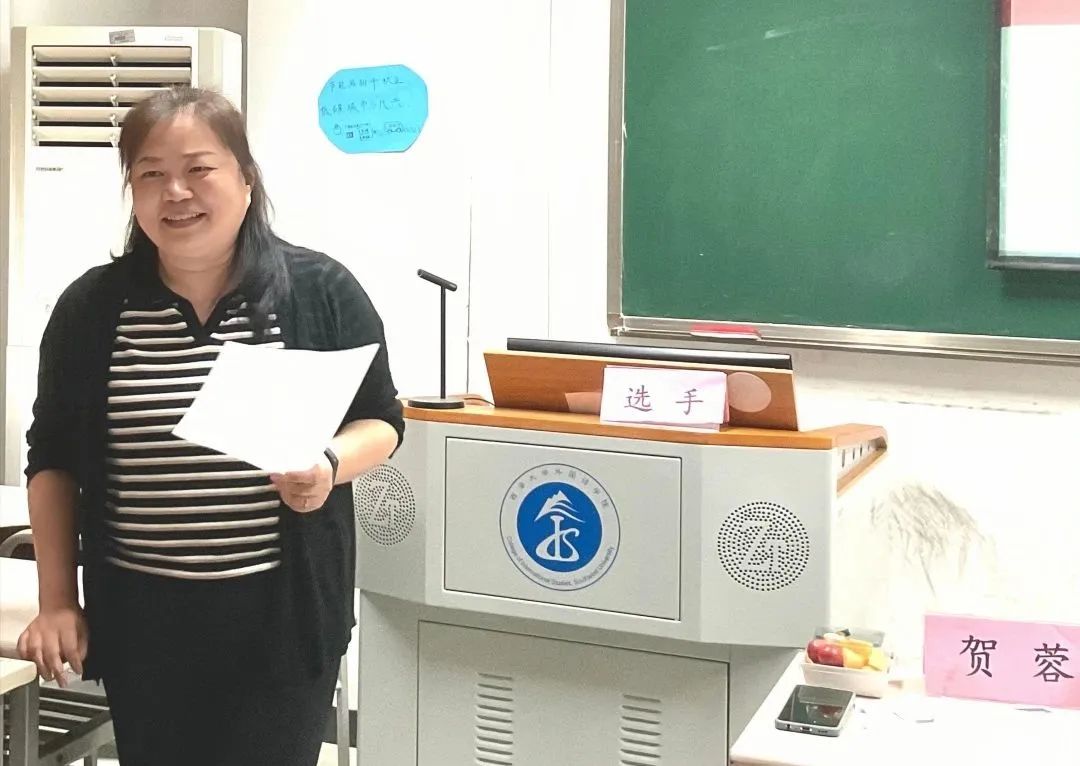 本次比赛邀请了黄学军、贺蓉、陈静,段芸,陈燕和王颖六位老师担任评委。在初赛中,22名参赛选手分别在两个赛场进行了五分钟现场英文授课。评委老师们依据教材分析与处理、教学方法与手段、教学程序和教学基本功等维度进行了综合评定。经过紧张的角逐,最终12名选手成功晋级复赛。