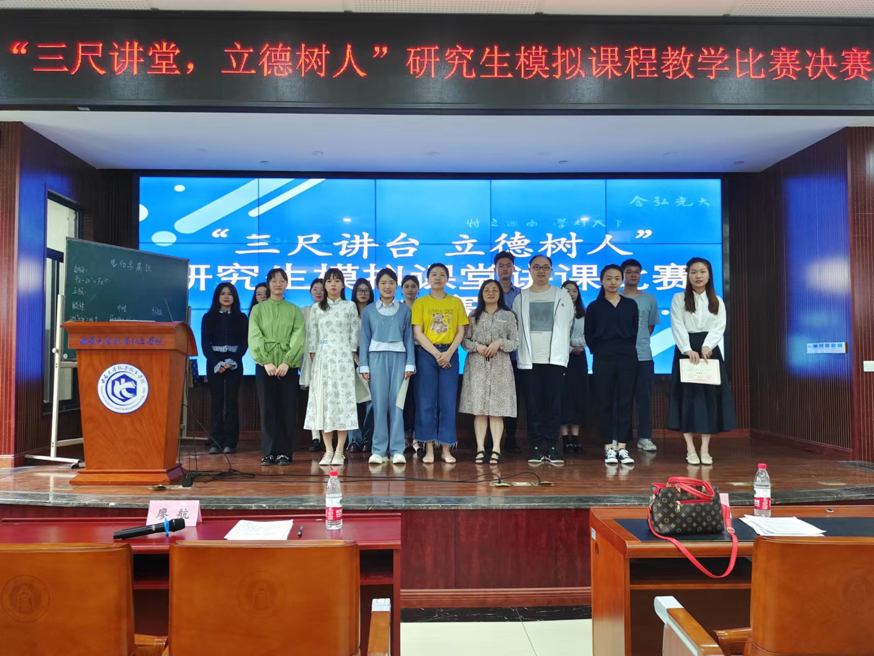 通过报名、初赛、决赛三个环节,本次“三尺讲台 立德树人”研究生模拟课堂讲课比赛到此落下帷幕。本次比赛不仅丰富了同学们的课余生活,更是为同学们搭建了锻炼自己,展示自己,交流学习的平台。