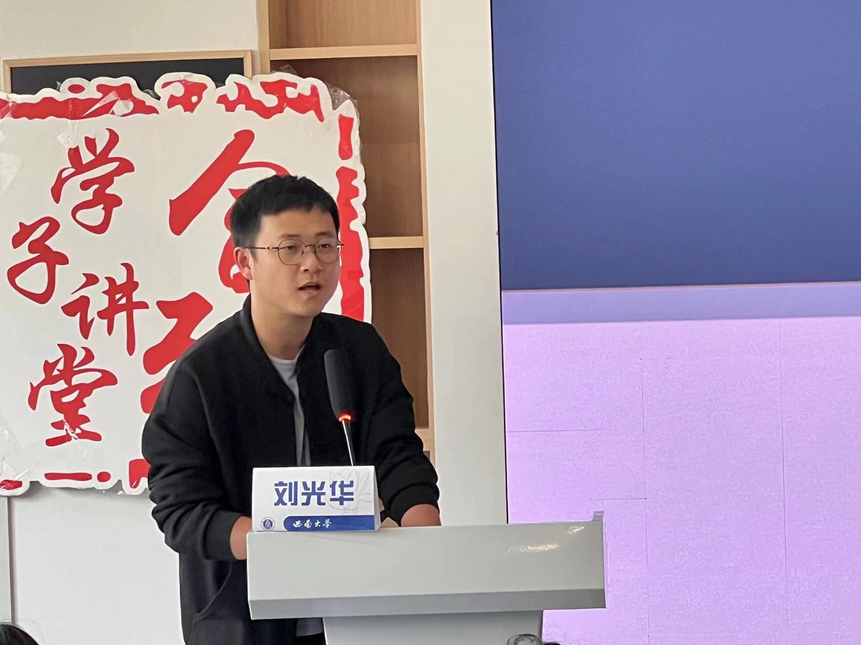 刘光华同学以“论文投展与个人求职经验”为切入点,从“明确主题,确立方向”“文献查找,定标立意”“结构简明,逻辑清晰”“脚注处理,文献引用”四个方面进行分享。他首先针对投稿来源、写作方向以及写作工具进行讲解,在文献查找、阅读、引用以及文章结构等方面提出了自己的宝贵建议。另外,针对求职,他从考编经验、考试概况、简历制作、试讲与结构化面试、个人感悟五个方面由浅入深地分析了自身备考的详细过程。最后,刘光华同学号召大家专注于自身专业实力的提升,多试错,在失败中积累力量,打好求职备考的“攻坚战”。