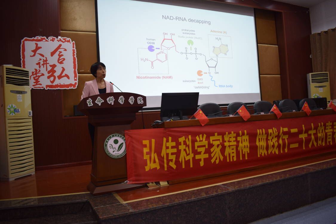 陈雪梅教授是美国国家科学院院士,美国加州大学河滨分校教授、博士生导师,现任北京大学生命科学学院院长,主要研究内容为microRNA和花器官发育,包括利用microRNA分析植物发育机制,以拟南芥为模型研究干细胞调控机制。在此次报告中陈学梅教授分享了自己20年来在Small RNA领域中的研究历程,详细介绍了从miRNAs的发现到整个研究过程。她的研究结果发现拟南芥NAD-RNAs是剪接和多腺苷化的,并且与多聚体相关,详述了团队在利用转录组数据以识别和量化具有特异性和敏感性的NAD-RNAs方面的工作以及调节NAD-RNAs水平的去帽机制。
