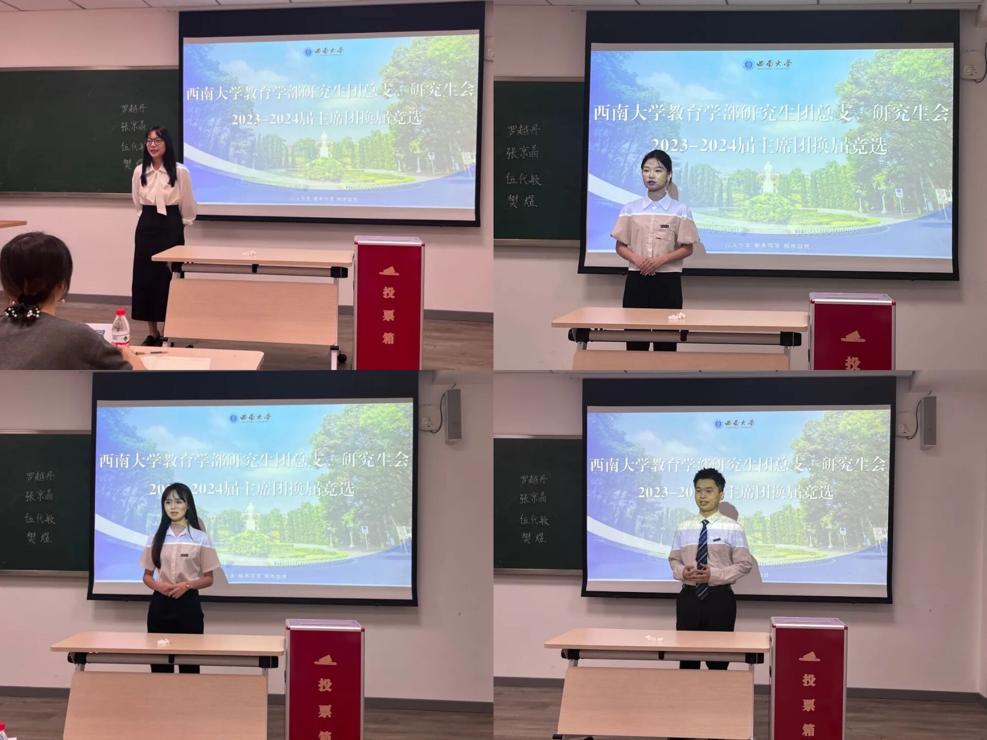 学生干部需追求“纸上得来终觉浅,绝知此事要躬行”的实干。四位候选人在自我陈述中展现出饱满热情和踏实作风;在即兴演讲中表现出随机应变能力和青年工作态度;在现场答辩中尽抒胸臆,妙语巧辩。