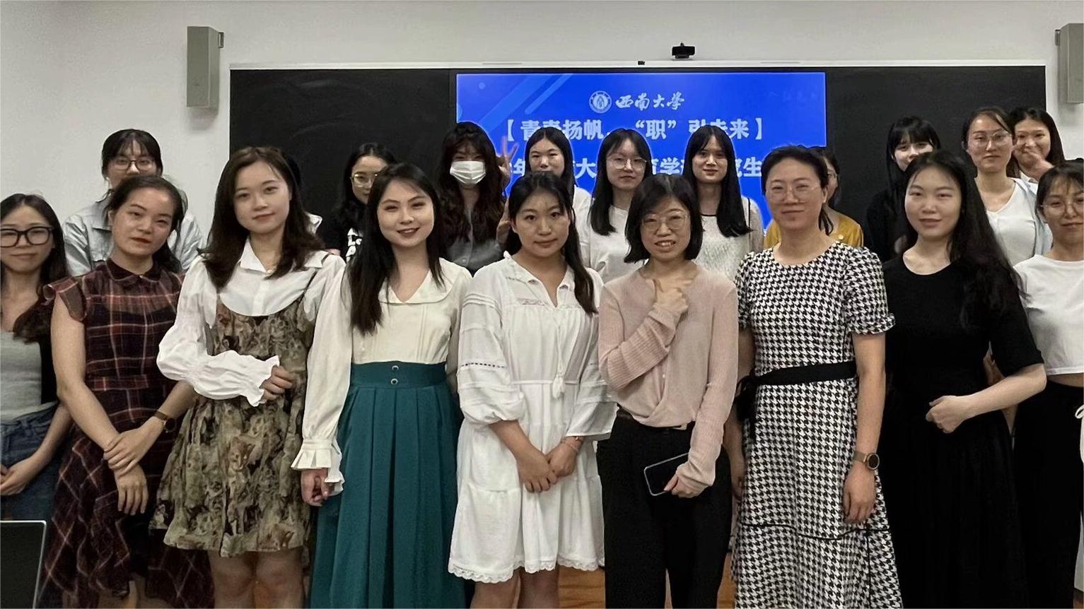为全面落实党中央、国务院“稳就业”“保就业”有关决策部署,促进学部学子高质量高效率就业,学部研究生团总支研究生会为于2023年6月2日晚邀请各专业不同就业方向的优秀毕业生,传递和分享成功经验,为师弟师妹们答疑解惑。教育学部2021级研究生辅导员郑云丹老师出席了本场座谈会。