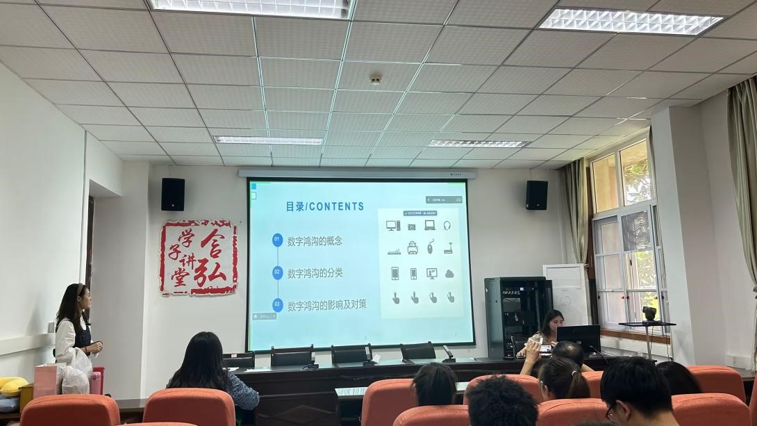 2021级畜牧专业李梦楠同学以“被数字鸿沟拉远的距离”为题,从数字鸿沟的概念、分类、影响及对策等方面展开分享。在科学技术发展迅速的今天,数字技术发展虽然给我们带来很多便利,但也拉大了不同年龄、阶层、区域和国家之间的数字鸿沟,不同的信息网络技术掌握程度、应用程度以及创新能力的差别造成信息落差和贫富两极分化的影响越来越大。李梦楠同学提醒同学们要正视数字鸿沟问题,为改善经济贫困、技术贫困区域和缩小数字鸿沟做出力所能及的贡献。