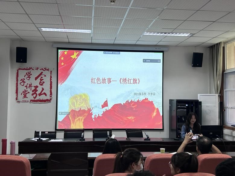 2021级畜牧专业研究生李梦圆以“红色故事——绣红旗”为题,围绕江姐精神展开讲述。1961年12月,中国青年出版社经过三年多的精心打磨后推出了革命历史长篇小说《红岩》,以艺术再现烈士狱中制作红旗的情节。在寒冷的狱中,江姐把革命胜利的憧憬和坚定信念一针一线地绣在了红旗上。李梦圆同学的讲解让大家明白,正是因为有革命前辈抛头颅、洒热血,我们才有如今的幸福生活。