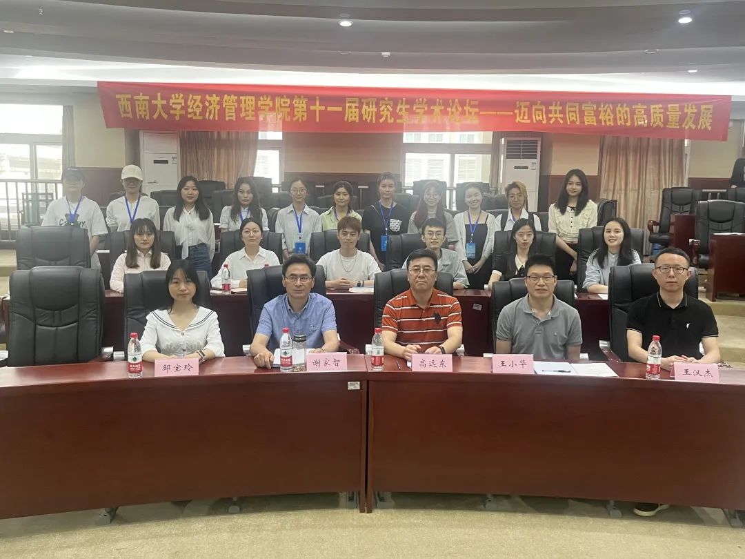 开幕式结束后,经济管理学院博士生导师谢家智教授作主旨发言,他指出共同富裕的重要目标是实现全体人民共同繁荣,而高质量发展则是推进共同富裕的重要手段和关键路径。在进行学术研究时要紧跟时代焦点,选择合适的研究题目和方法,确保研究具有独创性、实用性和科学性。
