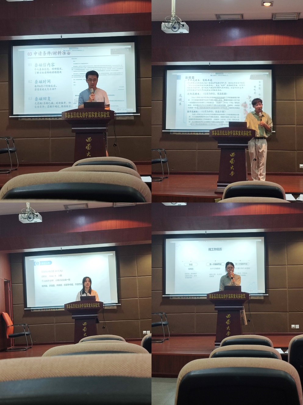 四位研三毕业生主要从考公考编、求职就业、申博考博等方面进行经验分享。张晓琳(申请山东大学博士)主要从院校导师的选择、申博的条件、材料准备、以及复试流程等方面对博士“申请-考核制”进行经验分享。他建议有考虑继续读博的同学们,要充分利用现有资源,提早准备论文,最好是在研三前准备好论文,同时保持良好的心态,要有坚定不移的信念。秦士灯(三峡大学辅导员)以“以青春之名,赴时代之约”为主题分享他的求职经历,主要从定向选调和高校辅导员考试方面给我们做了一个详细的介绍。他强调独立之思想,敏锐之直觉,要怀抱梦想又脚踏实地,要敢想敢为又善作善成,要在职业中实现自己的价值。黄秋明(重庆市委选调生)分享了重庆市定向选调生备考的经验,从考试内容、笔试心得、面试心得方面进行了分享,建议同学们备考要制定好复习计划和选择好的复习方法。曾升(湖北省宣恩县第一中学)对找工作方面进行交流分享,她建议根据自己的发展方向有侧重准备相关的材料,及时关注招聘信息,注意考试时间,面试需要注意着装,一定要大胆报名,抓住机会,相信自己!