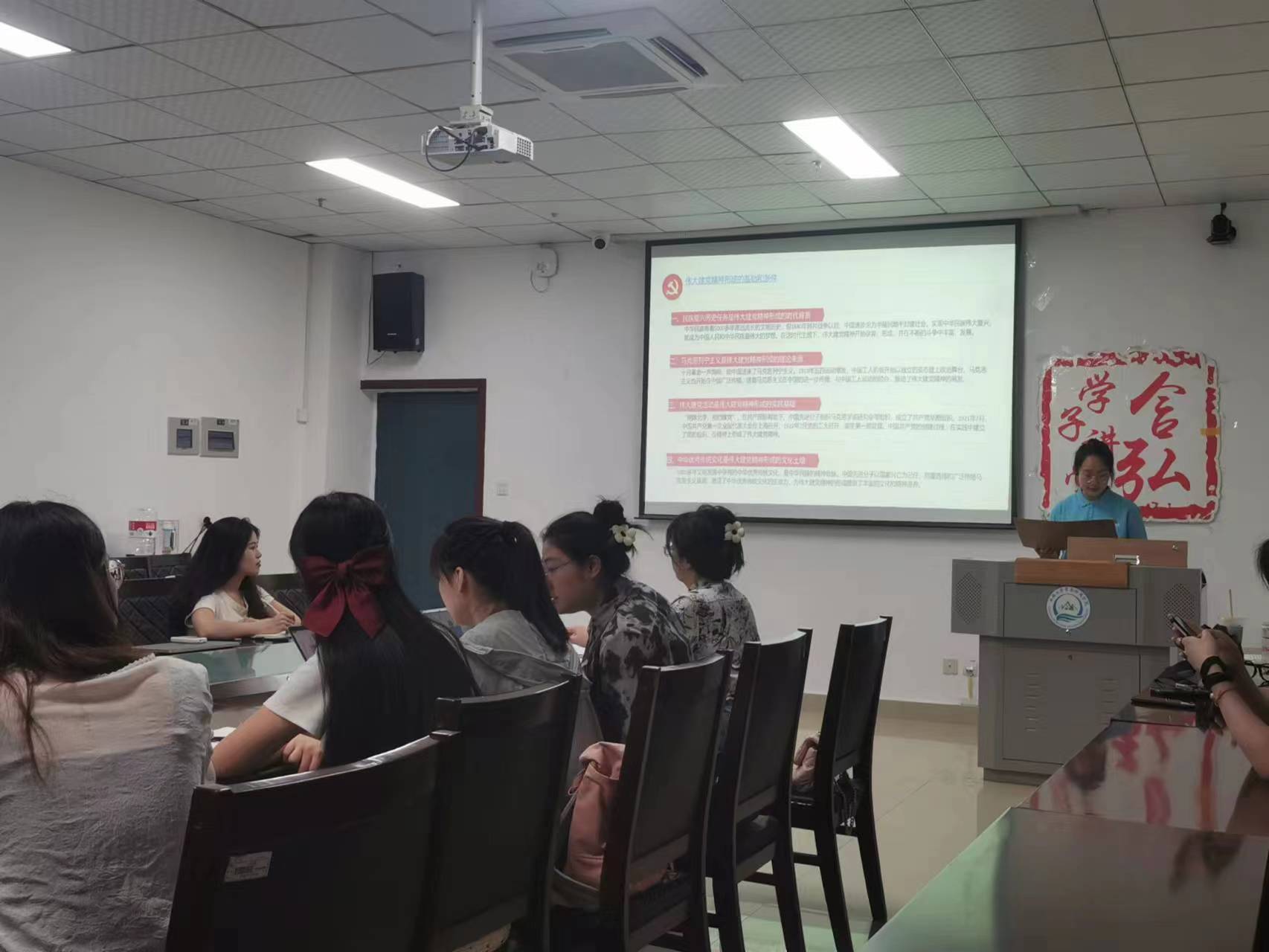 刘芳同学围绕伟大建党精神,讲述了伟大建党精神形成的基础、内涵、重要地位及意义,让大家明白继承弘扬伟大建党精神必将成为激励全党全国人民迈进新征程、奋进新时代、不断攻坚克难、从胜利走向胜利的强大精神动力。