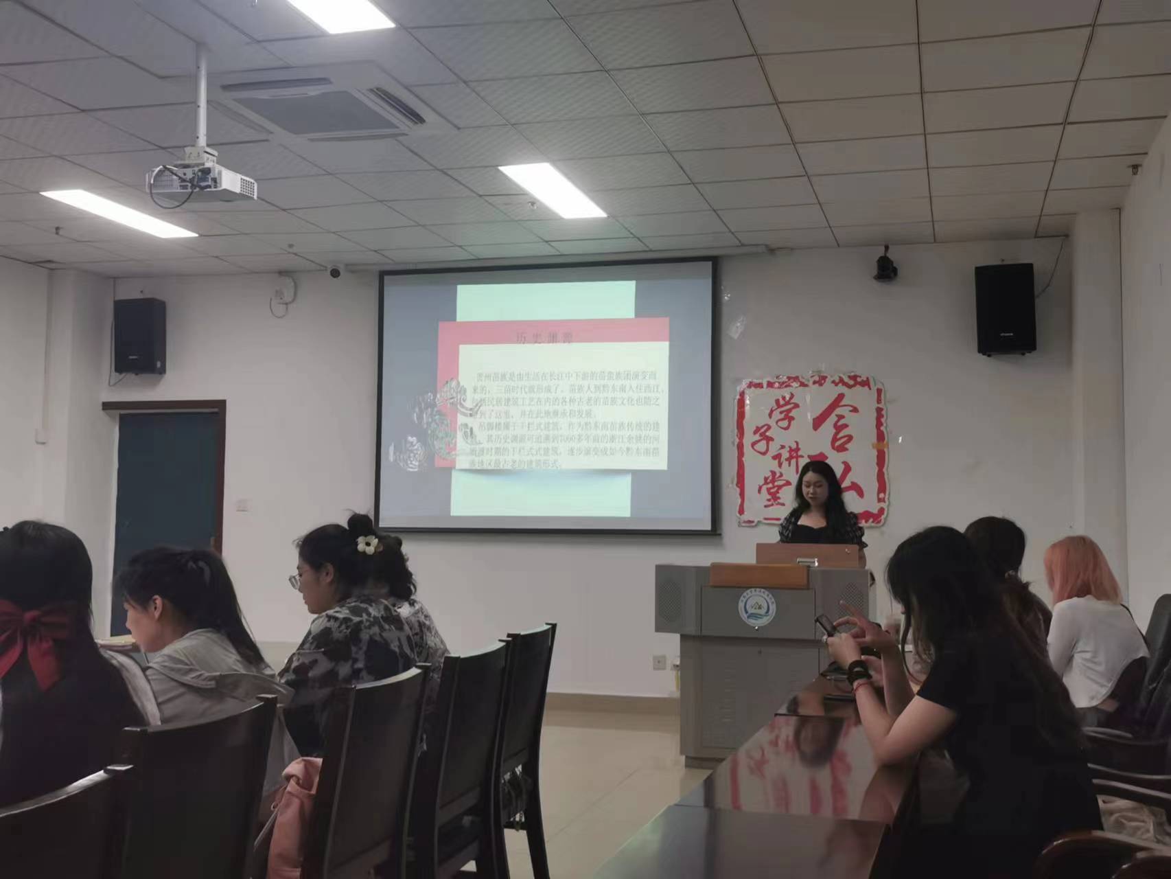 徐婷同学为大家讲述了黔东南苗族侗族自治州传统文化。通过对贵州吊脚楼、侗族大歌和贵州茅台的介绍,展示了丰富的民族传统文化,让大家对黔东南苗族侗族自治州传统文化有了更好的了解,对少数民族文化产生了浓厚的兴趣。