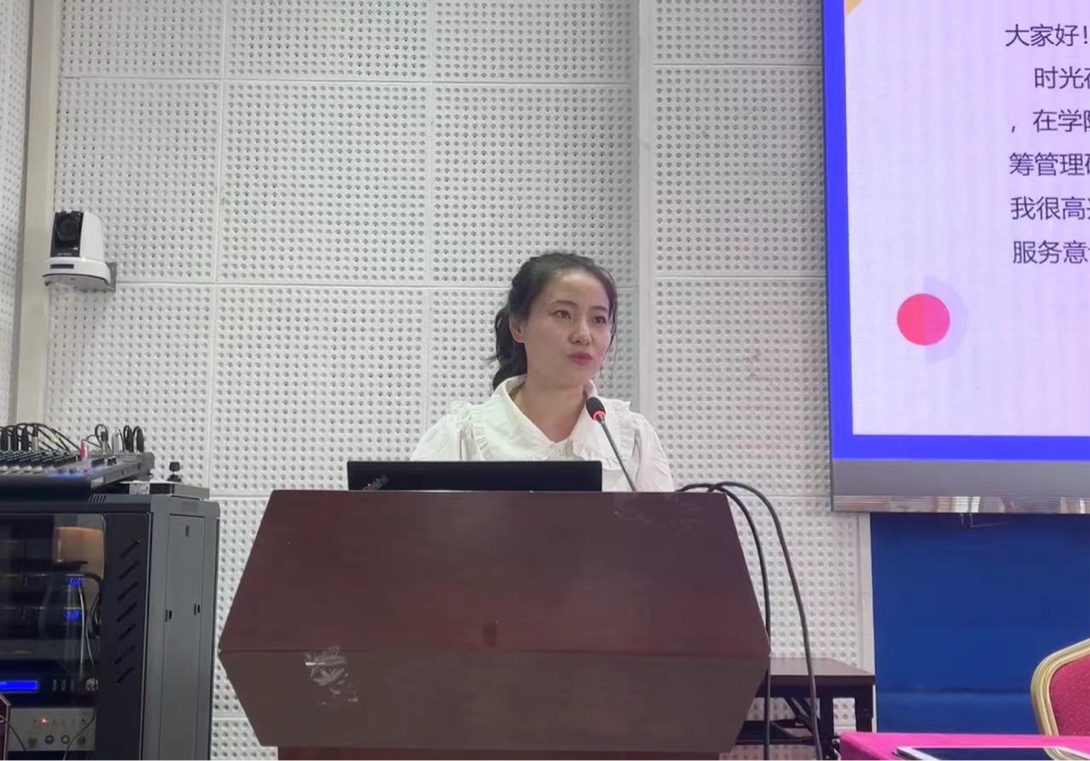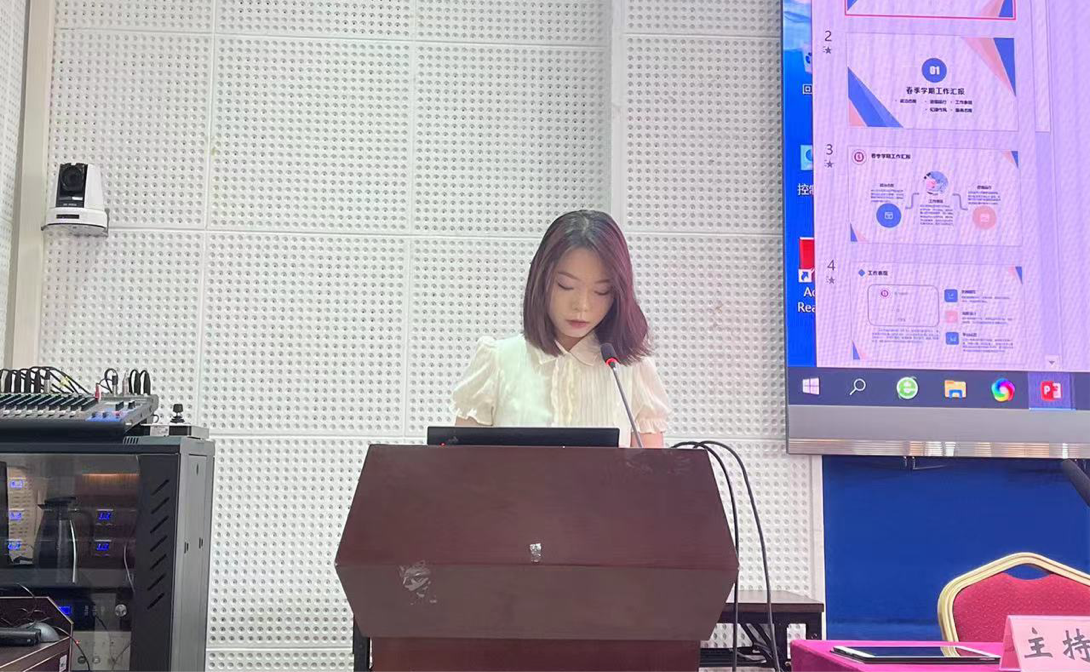 接着,由研会部门负责人作述职报告。综合办来寿双、学研部易雪、宣传部成员代表伍洁、组织部姜冰、实践部闫佳琪、文体部刘慧伦分别围绕所在部门的工作成绩、工作不足以及工作展望三个方面进行汇报。部门代表纷纷表示,希望部门工作能在来年中取长补短、相得益彰,推动研会工作朝更高标准、更高质量的方向发展。