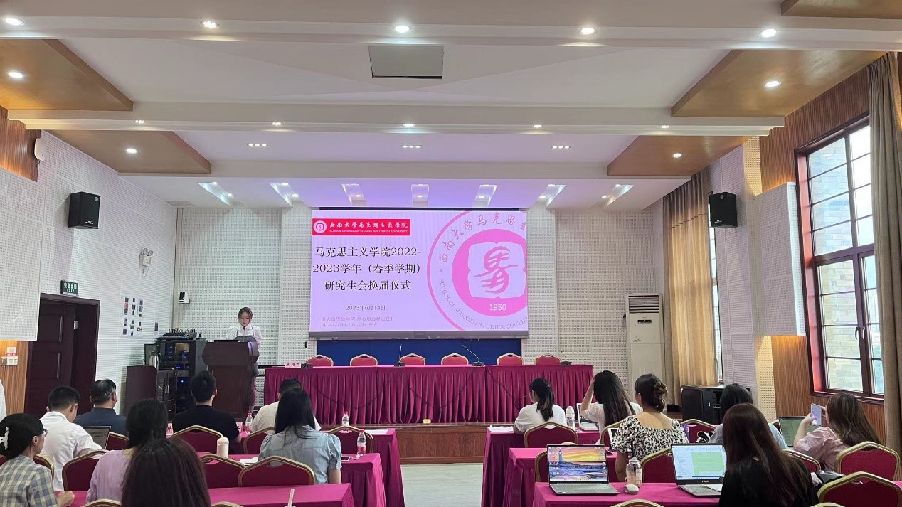 为深入学习宣传贯彻党的二十大精神,落深走实《关于巩固高校学生会(研究生会)深化改革的若干意见》等相关文件精神,总结工作成绩,反思问题不足,促进学院研究生会各项工作更加高效有序开展, 6月14日下午,2022-2023学年春季学期马克思主义学院研究生会述职评议会暨研究生会换届仪式在马克思主义学院501会议室召开。betway西汉姆联马克思主义学院党委副书记、纪委书记刘东升老师,辅导员王飒、黄林,历史文化学院民族学院第十八届研究生会主席团成员石云瑞同学出席会议。本次会议由马克思主义学院研究生会实践部成员张干主持。