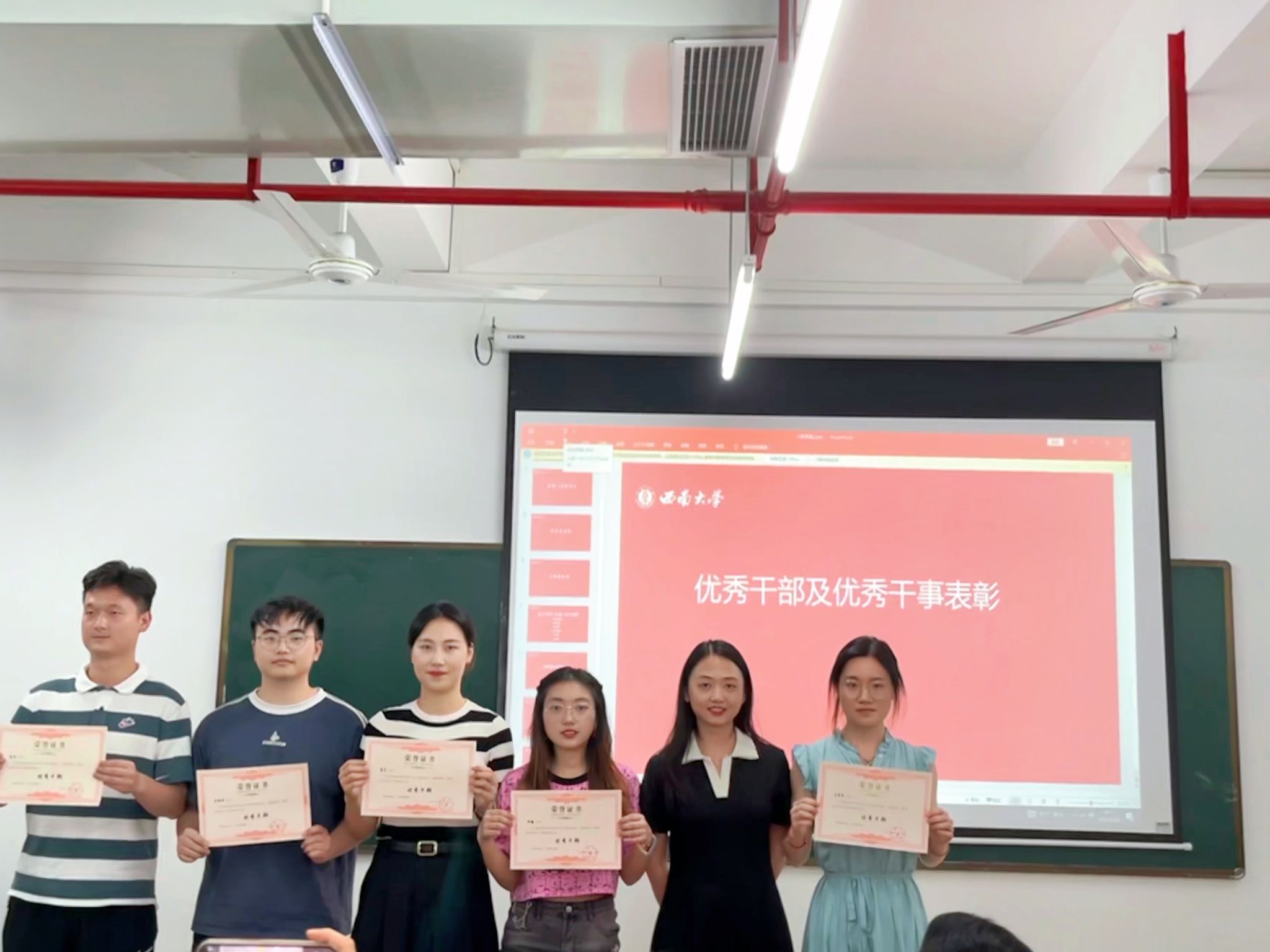 接着,由团总支研究生会主席团候选人进行自我评价,现场实时投票和计票确定了下一学年的主席团成员为:王欣、赵心妍、郑昱辰;随后进行优秀干部及优秀干事的表彰。
