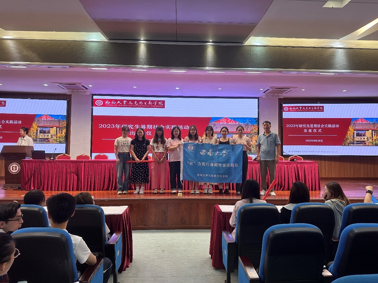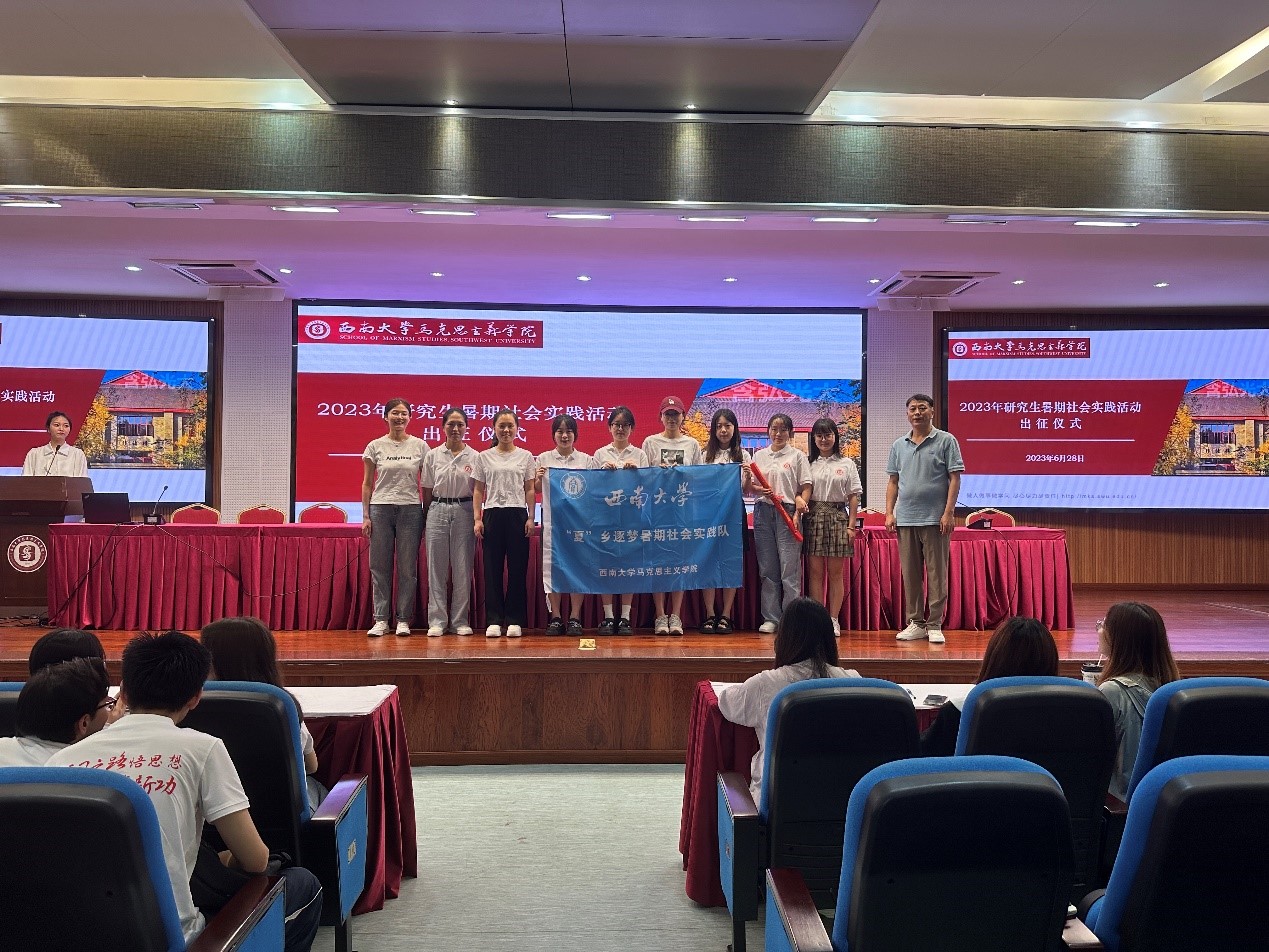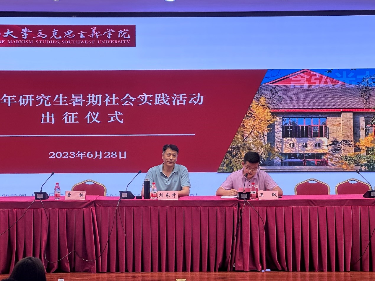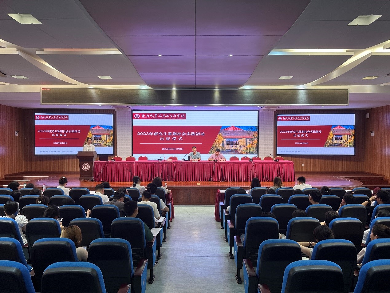 6月28日,马克思主义学院在505报告厅举行了2023年研究生暑期社会实践出征仪式,马克思主义学院党委副书记、纪委书记刘东升,研究生辅导员王飒老师出席,11支队伍全体成员参加。