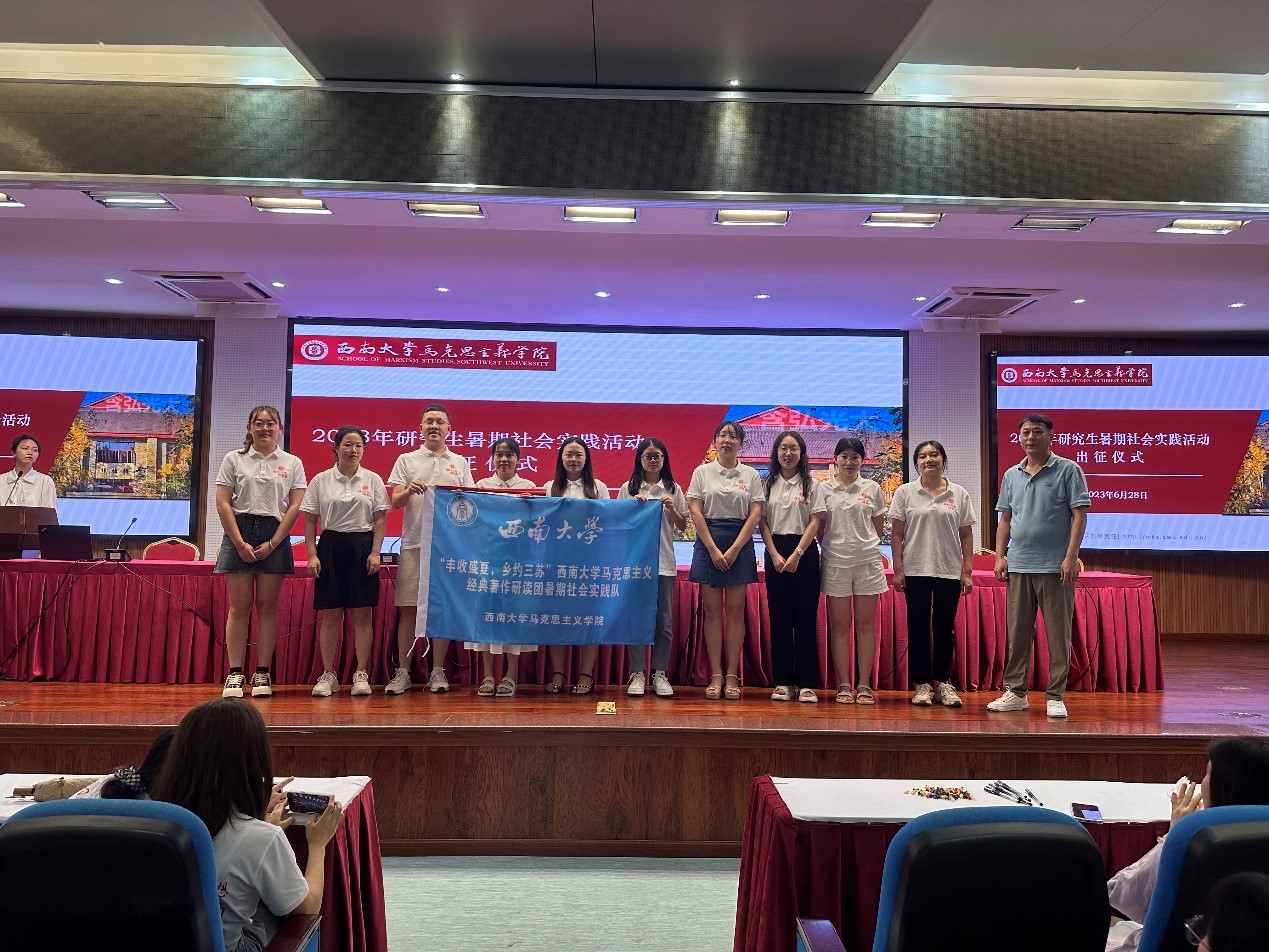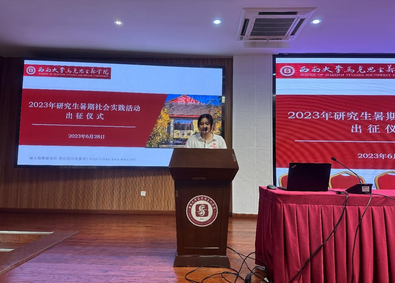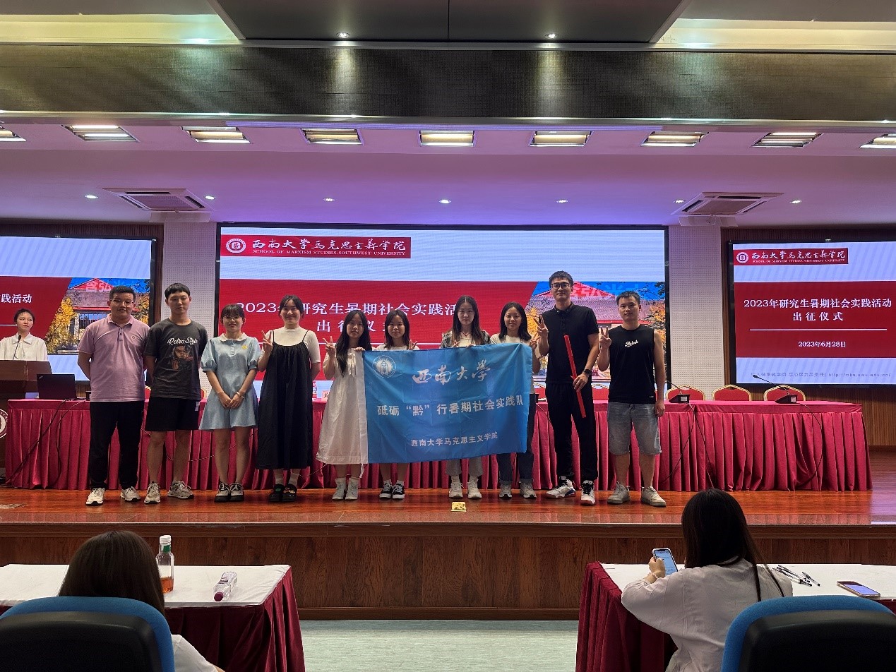6月28日,马克思主义学院在505报告厅举行了2023年研究生暑期社会实践出征仪式,马克思主义学院党委副书记、纪委书记刘东升,研究生辅导员王飒老师出席,11支队伍全体成员参加。