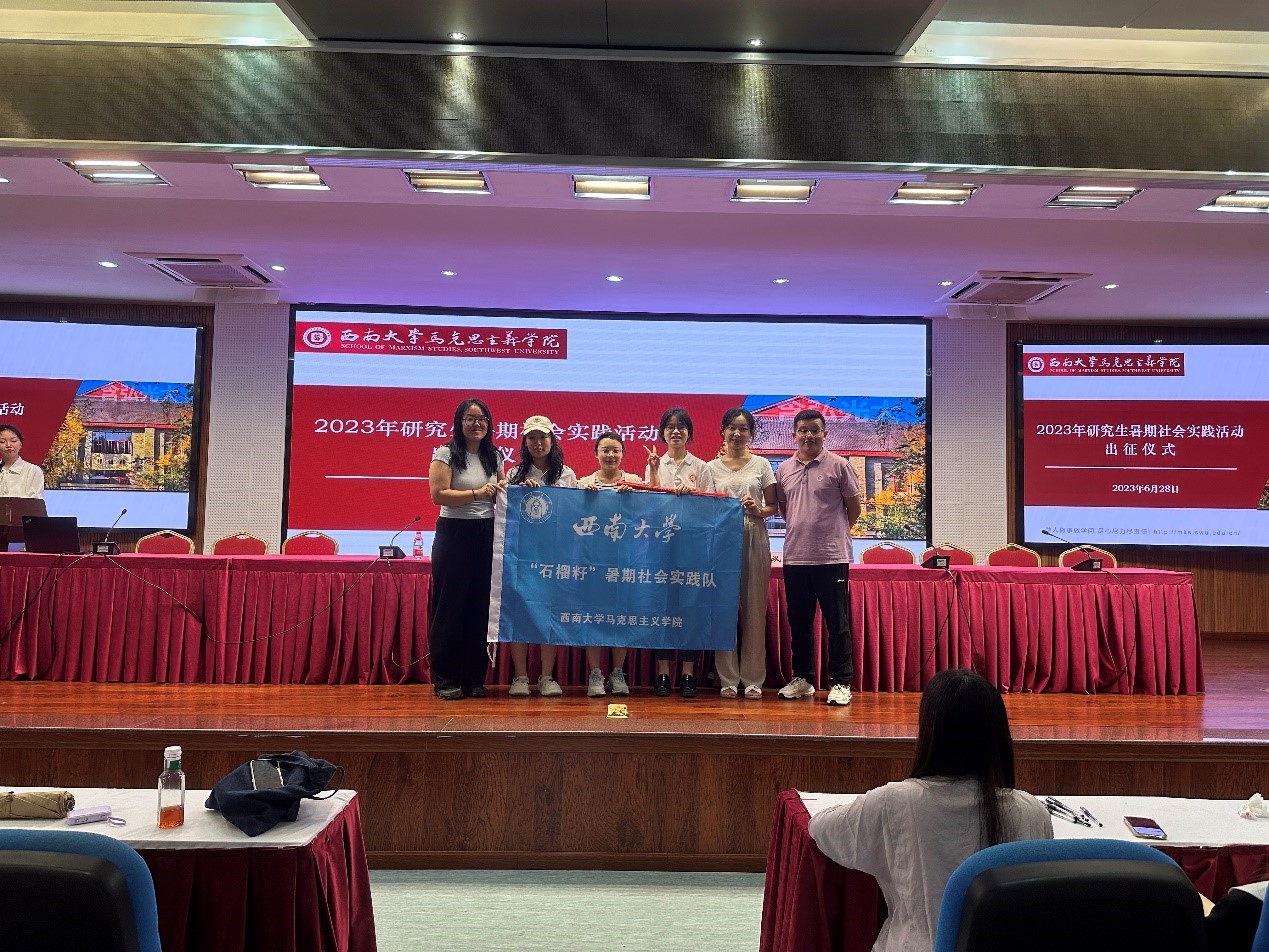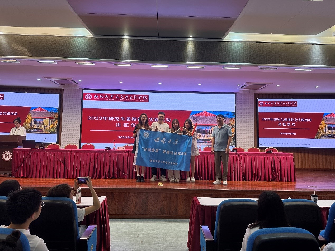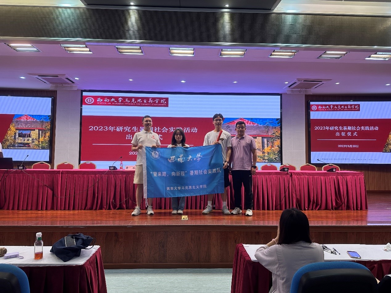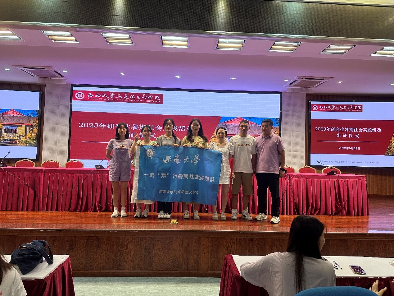 6月28日,马克思主义学院在505报告厅举行了2023年研究生暑期社会实践出征仪式,马克思主义学院党委副书记、纪委书记刘东升,研究生辅导员王飒老师出席,11支队伍全体成员参加。