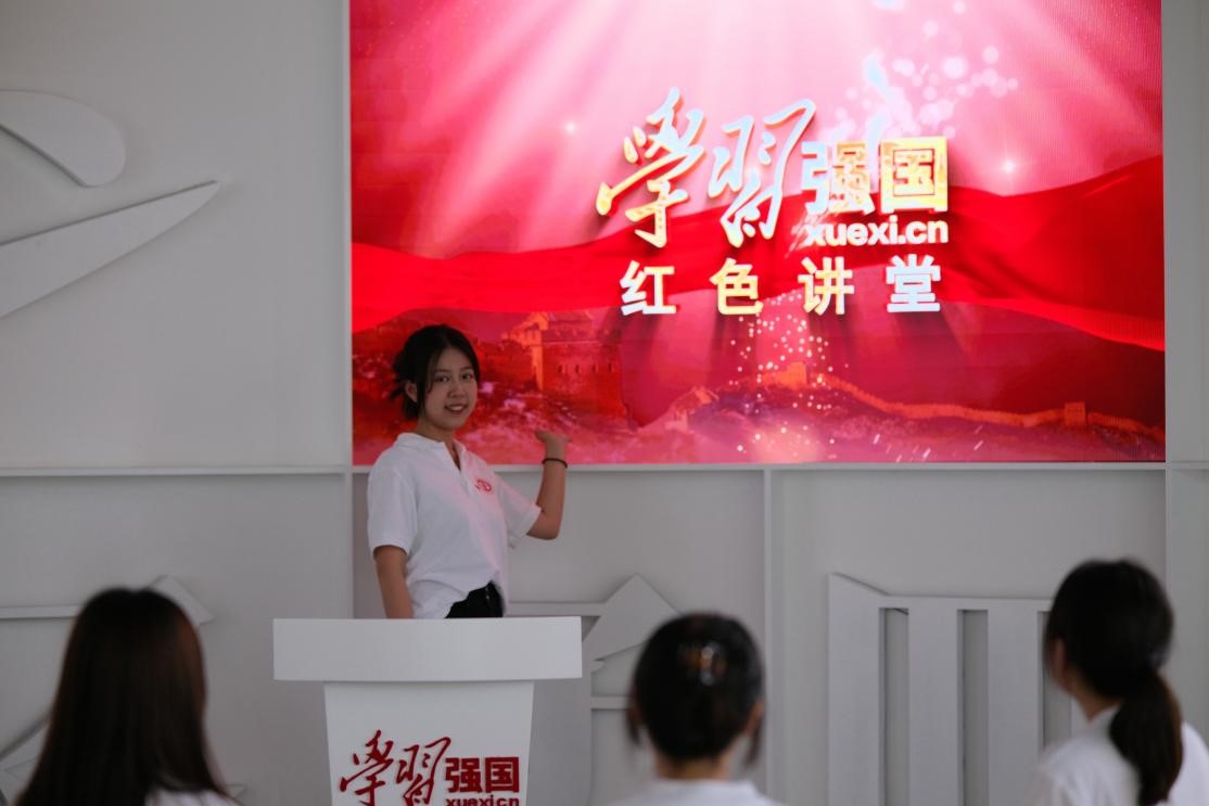 7月7日下午,实践队抵达战旗村。在村支部书记李光菊的带领下,沿着习近平总书记考察战旗村时的足迹参观了初心馆。多年来,战旗村始终坚持“党建领航守初心、勇于探索求突破、创新实践谋发展”的理念,熔铸“奋勇争先、敢为人先、一直领先”的战旗精神,成为“全国乡村振兴示范村”。通过参观展厅里陈列的情景照片和荣誉墙,队员们在了解了战旗村的历史沿革、发展成就和未来蓝图后,纷纷表示会更加坚定地跟党走,讲好乡村振兴的故事,奋进新征程、建功新时代。