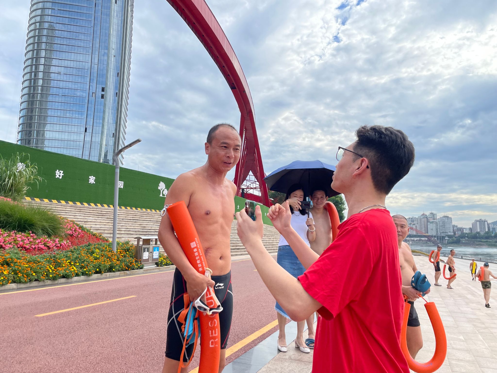 从现场走访发现,在三江口的护栏上,告示牌提示着人们这里的禁钓区与禁钓期。近年来,宜宾人民坚持“生态优先、绿色发展”理念,贯彻落实习近平总书记“共抓大保护、不搞大开发”方针,努力打好“蓝绿”保卫战。一名宜宾游泳协会成员向队员们讲到,“钓鱼的人看不到了,江边环境更美了,甚至可以在江边看到江豚的身影。”