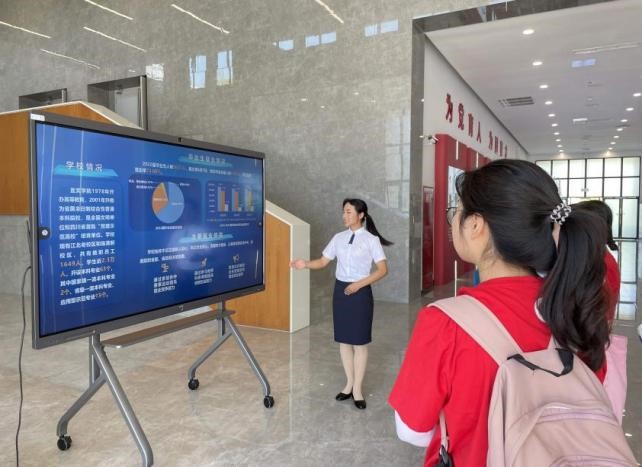 首先,实践队来到宜宾学院临港校区求实会堂,参观毕业生就业情况展台、模拟垃圾智能分类运输机器人展台、智慧农业物联网监控系统、油樟萃取精馏装置、就业创业指导服务等展区及招聘会现场,了解了宜宾学院毕业生就业、人才培养和产教融合等情况。在讲解员生动形象的讲解中,队员们看到了宜宾学院用心用情让青春成就梦想的努力,和以实际行动认真兑现对习近平总书记的承诺。
