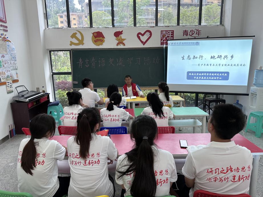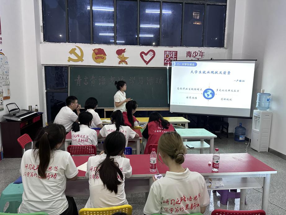 7月4日下午,实践队成员前往中益乡华溪村青少年之家,与路漫社工工作人员谭非同志开展了一场别开生面的座谈会。谭非老师聚焦青少年身心特点和成长发展需求,向队员们介绍了青少年之家目前运作情况以及乡村青少年身心发展现状,勉励青少年们应该多参与劳动实践,增强个人素质。实践队队员们就青少年教育和大学生就业话题开展交流座谈,大家纷纷表示:新时代的大学生应当用脚步丈量祖国大地,用奋斗书写青春之歌,在脱贫攻坚、乡村振兴、生态文明建设等志愿服务一线,勇于担当、甘于奉献。筑梦新时代,青年在路上,一直在继续,永不停歇。