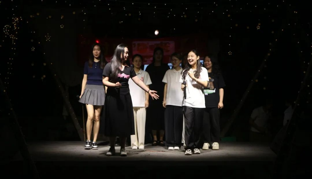 7月4日晚,实践队盛装出席,为石柱土家族自治县中益乡的村民们带来了一场独具特色的夏日“乡村晚会”。石柱传统啰儿调《太阳出来喜洋洋》、歌舞朗诵《山村的夜晚》、器乐合奏、流行演唱等节目精彩不断、好戏连连。最后一曲《灯火里的中国》唱响民音,唱出乡情,而后伴着盛大的篝火仪式和传统土家族的摆手舞,晚会在村民的欢呼声中落下了帷幕。