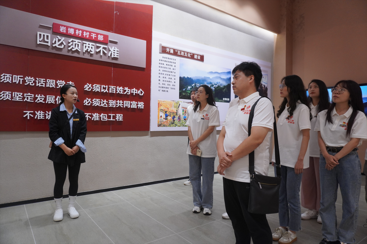下午,学员们来到了盘州市岩博村,岩博现场教学基地副校长屠丽紧扣“产生的背景”“主要内容”“现实意义”三方面为学员们鞭辟入里、深入浅出地讲述了岩博精神。过去的岩博村缺乏村集体产业,村民生活极度贫困,屠副校长用“穷山恶水”进行高度凝练概括。但以余留芬书记为首的村“两委”班子带领广大岩博群众苦干实干,在推动岩博“加速度”发展中实现华丽蝶变,使之成为了远近闻名的小康村、幸福村,由此淬炼了“艰苦创业、勇于担当、拼搏进取、一心为民”的岩博精神。其次,屠副校长深度结合中央“1号文件”和岩博发展成效,阐明新时代农村实现高质量发展的四点经验,即必须建强基层党组织、选优育强领头雁、走好产业振兴路、紧跟政策风向标。最后,她还深刻指出,乡村天地无比广阔、时代青年大有可为,并寄语全体学员要扎实学好专业知识、练强本领才干,将个人理想积极融入国家发展、民族复兴和乡村振兴的实践之中。学员们经过学习后,表示乡村振兴大有可为,吾辈青年应起而行之,为奋进新征程、建功新时代贡献出自己的青春力量。