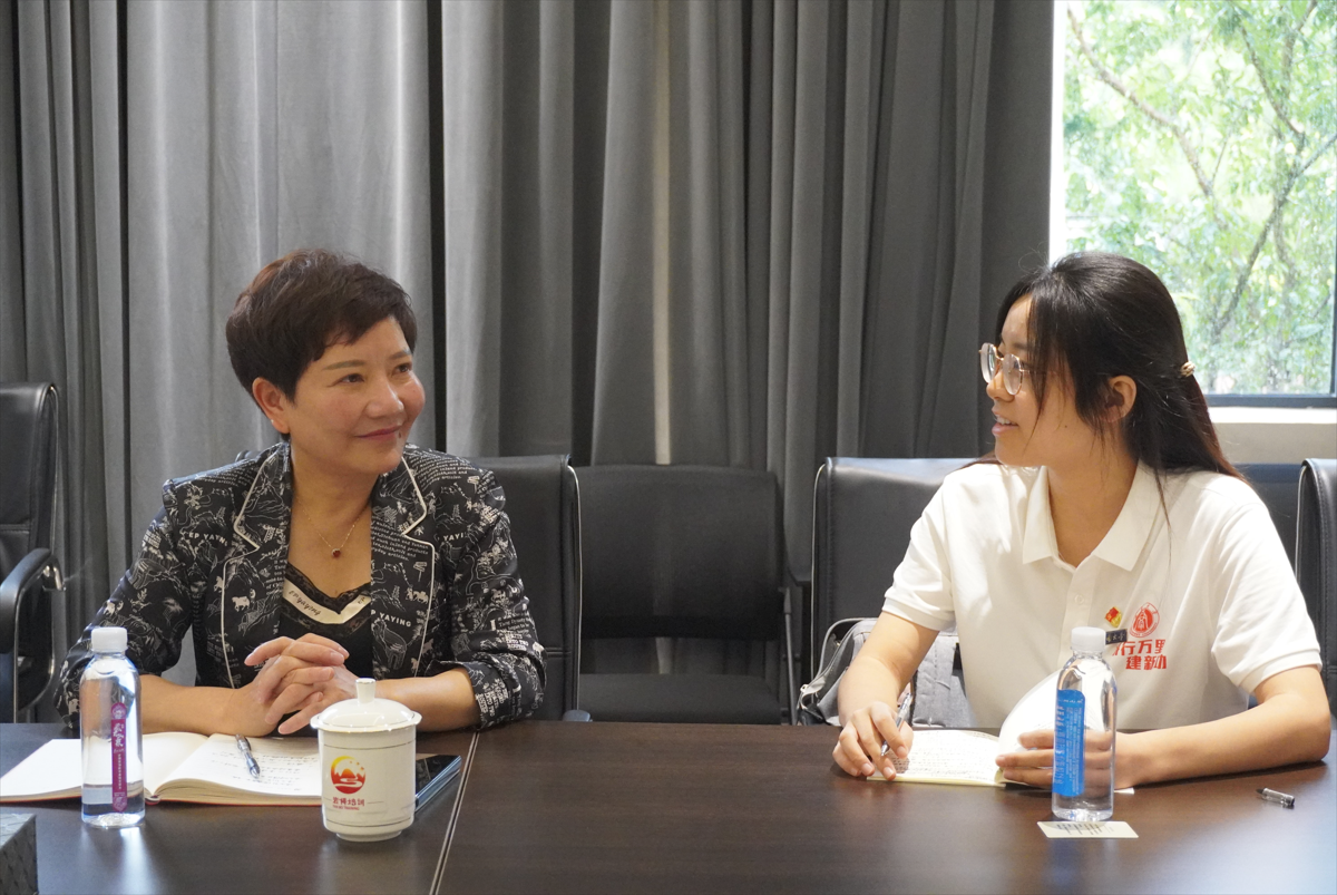 7月27日,在岩博现场教学基地的会议室中,由党委研究生工作部刘润老师带领学员们与“全国脱贫攻坚奋进奖”、“全国五一劳动奖章”获得者、党的二十大代表、岩博村党委书记余留芬展开访谈。先是刘润老师以“感谢”“感触”“感悟”三个词开场,向余书记介绍了“研行万里建新功”暑期实践队的总体情况。随后,余书记结合自身经历,向学员们深情讲述了她团结带领乡亲们将过去“穷山恶水”的岩博村建设成为如今产业兴旺、生活富足的示范村的艰辛奋斗历程。余书记在讲述过程中给同学们了几点建议,“面对困难积极寻找解决办法”,“要有远大理想,为社会创造价值而活”,“心中没有杂念,纯粹的时候就是最强大”,“人要学会接受结果”。