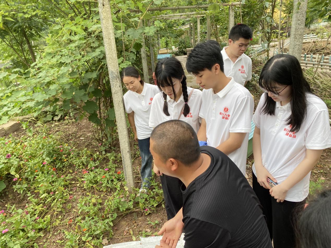在中蜂养殖示范基地、蜜蜂主题乐园、蜜蜂科普馆、蜜蜂博物馆,队员了解到中益乡具有得天独厚的自然条件,森林覆盖率达到88%,已有数百年养殖中蜂历史,2021年被中国养蜂学会授予“中华蜜蜂小镇”的称号,从“三无”小村镇一跃成长为小康城镇。实践队员与村民就中蜂的养殖管理、养殖规模、培训蜜蜂养殖技术、蜂蜜销售方式和蜜蜂文化产地建立等方面进行交流讨论。