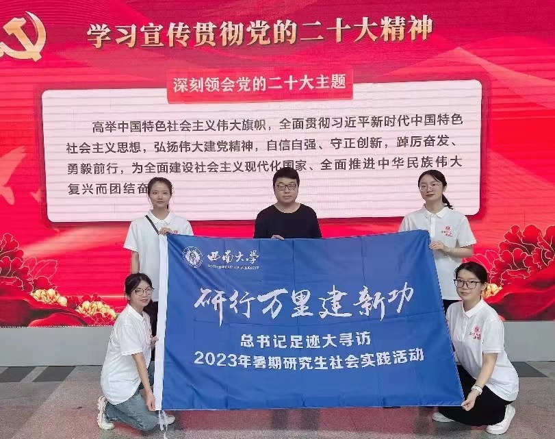 为深学笃行党的二十大精神,推动学习贯彻习近平新时代中国特色社会主义思想走深走实,引导广大研究生上好与现实相结合的“大思政课”,经济管理学院“经管·繁星”实践队自2023年6月底以来,围绕习近平总书记在国内考察调研的足迹,分成多个小队,先后在重庆、四川、贵州等地研学习近平总书记有关重要论述的精神要义,以青春力量践行党的二十大精神。