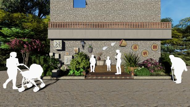 园艺园林学院“艺研成林”实践队本次考察设计主要围绕壹里老街入口处景观与农耕文化博物馆旁侧入口进行展开。实践队针对目前两个场所存在问题,并结合战旗村自身文化,为战旗村提供了打卡点的改造升级效果图。