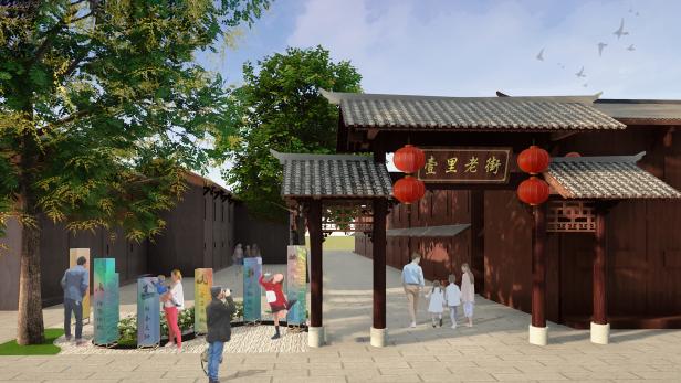 图片11-12:壹里老街入口处景观升级效果图(白天、夜晚)