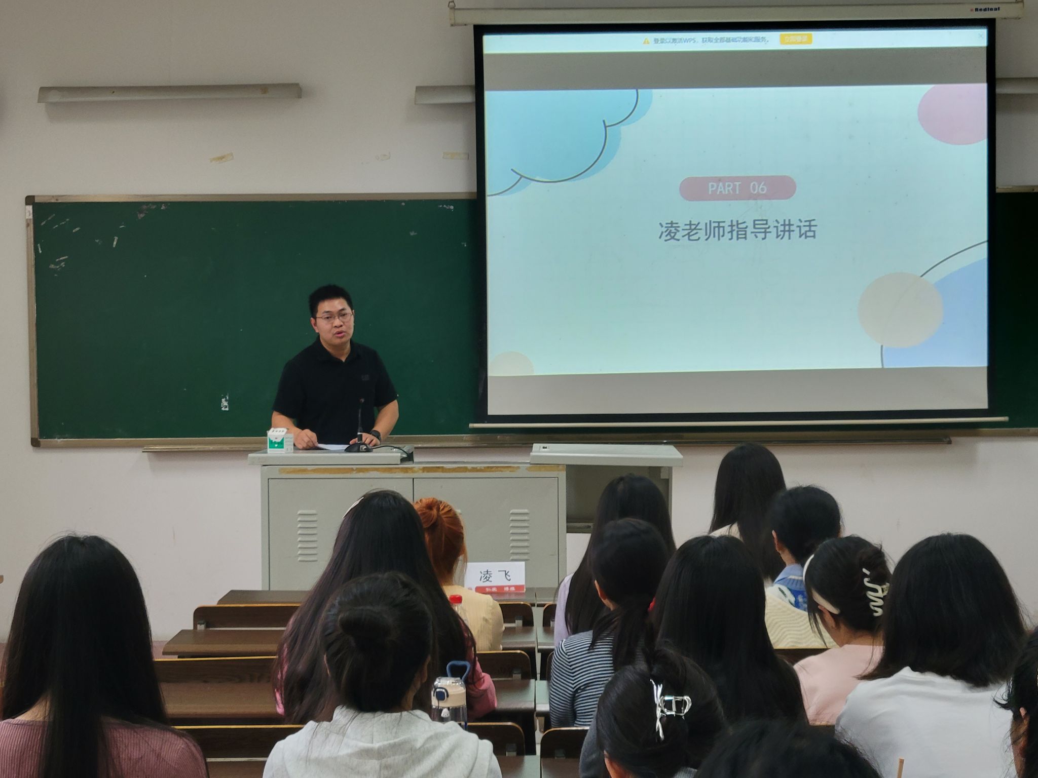 凌飞老师介绍了研会以往的大致工作情况,同时也对研会未来的工作作出指示。他希望研会能够在延续优良传统的同时发掘、发扬更多品牌特色。在讲话结尾,他预祝成员们在接下来的工作中得到全方面的收获与成长。