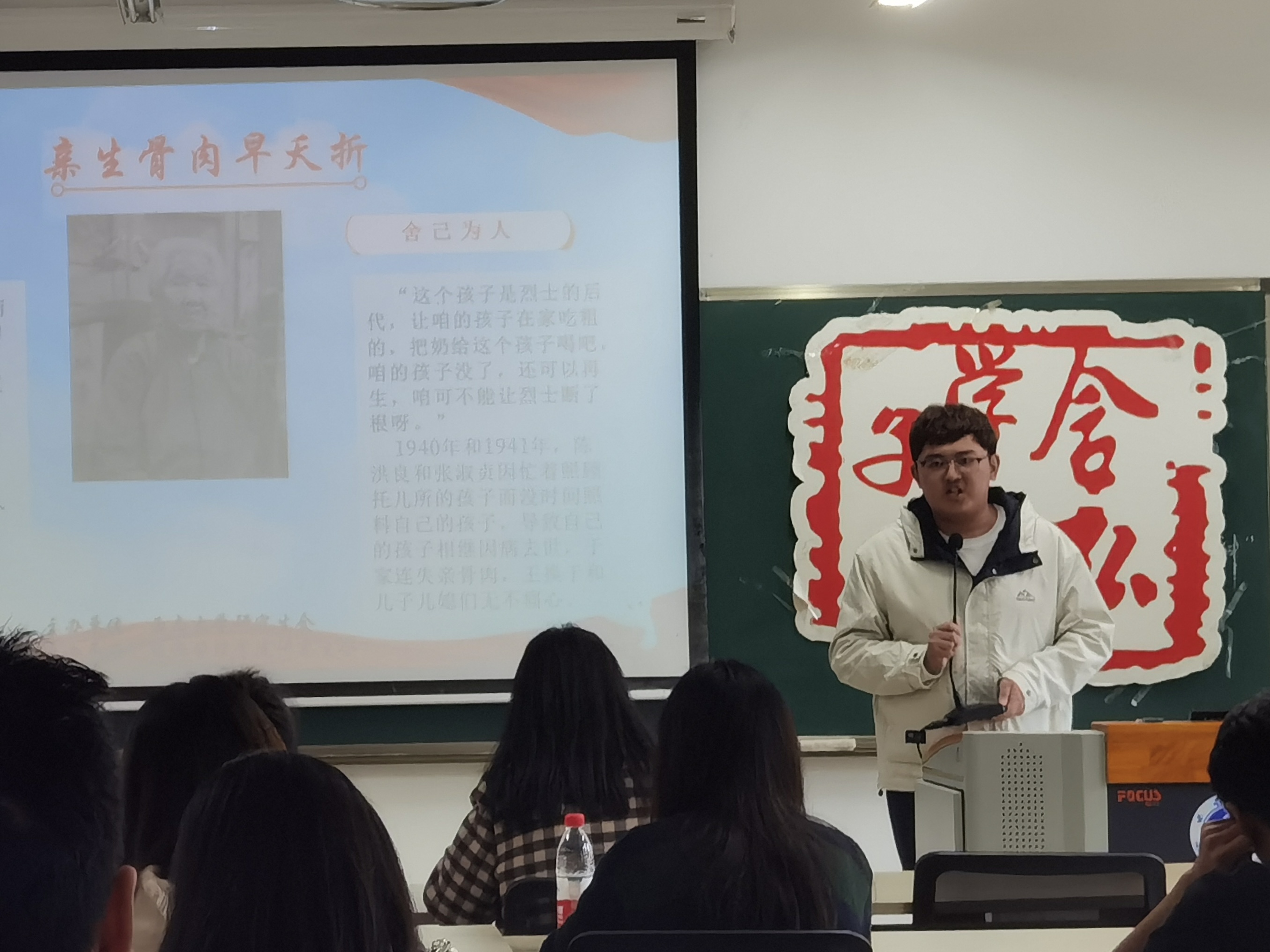 王文明同学推荐了书籍《百年沂蒙》,他首先引用了习近平总书记视察山东时提到有关沂蒙精神的论述,对沂蒙精神进行了初步的概括总结。随后,他以“沂蒙母亲”的故事为例,详细阐释了共产党人如何以“水乳交融、生死与共”的沂蒙精神,带领沂蒙人民反抗军阀、匪患、日寇以及官僚资本主义的压迫。最后,王文明介绍了党中央对弘扬沂蒙精神所做的有关指示,号召同学们在新时代要继续发扬和传承红色精神。