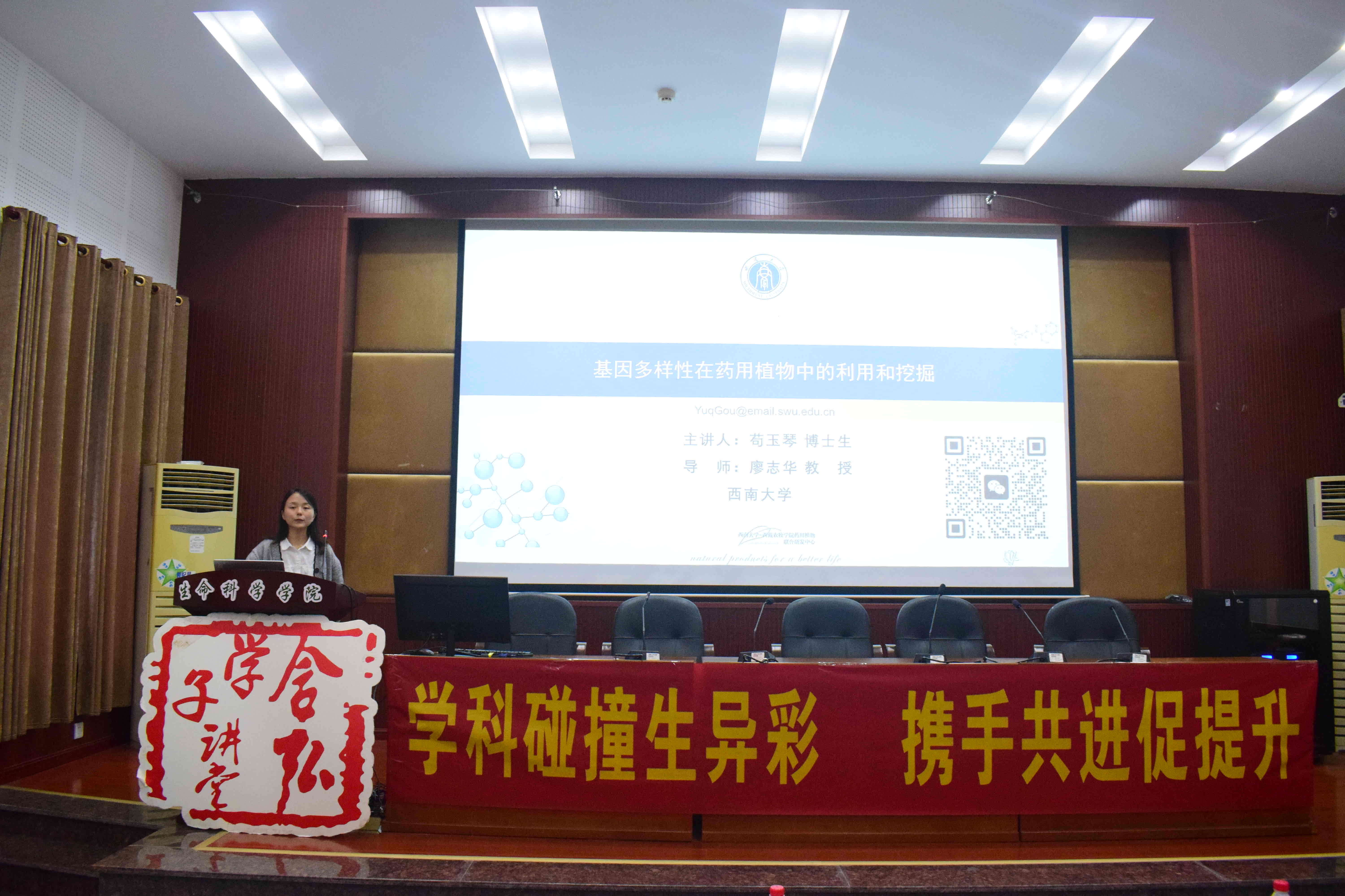生命科学学院苟玉琴同学向大家分享了基因多样性在药用植物中的利用和挖掘。她以青蒿为例,向大家讲述了青蒿素的重要意义以及如何利用基因多样性选育优质青蒿种质资源。另外,苟玉琴同学结合自身课题研究,以颠茄为研究对象,向大家阐述了如何通过基因工程、分子生物等相关技术,在转录调控层面进一步挖掘与颠茄中托品烷生物碱生物合成有关的基因并加以控制利用,以实现药用植物资源利用的最大化。