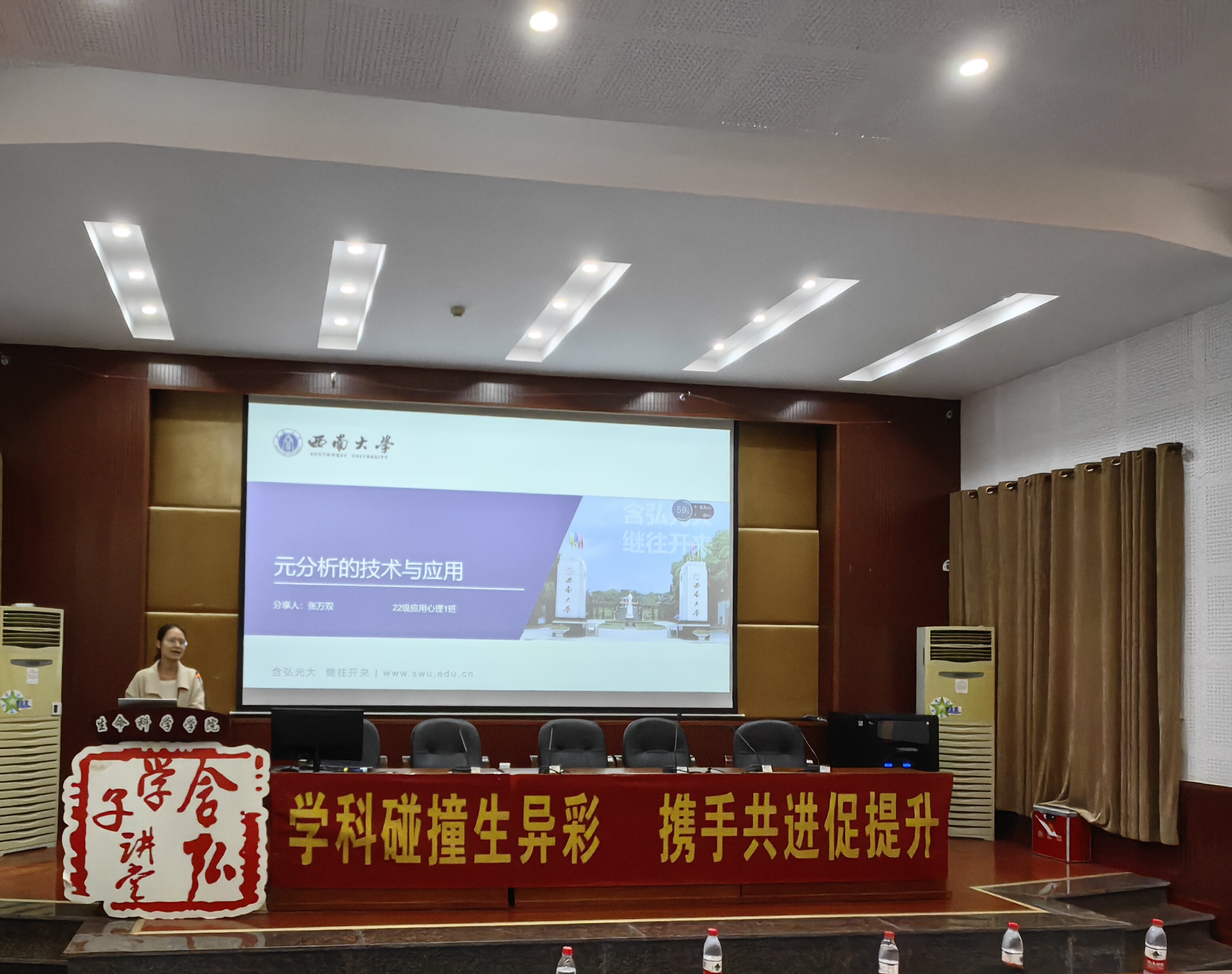 心理学部的张万双同学向我们分享了元分析的技术与应用。她首先介绍了元分析技术的主要内容以及元分析的主要特点,包括客观性、科学性与可重复性,展现了元分析的实用价值。并且,张万双同学结合实际,以自己撰写的文章为例,详细介绍进行元分析的各个步骤,启发同学们联合自身专业领域,进行多样的科学分析。