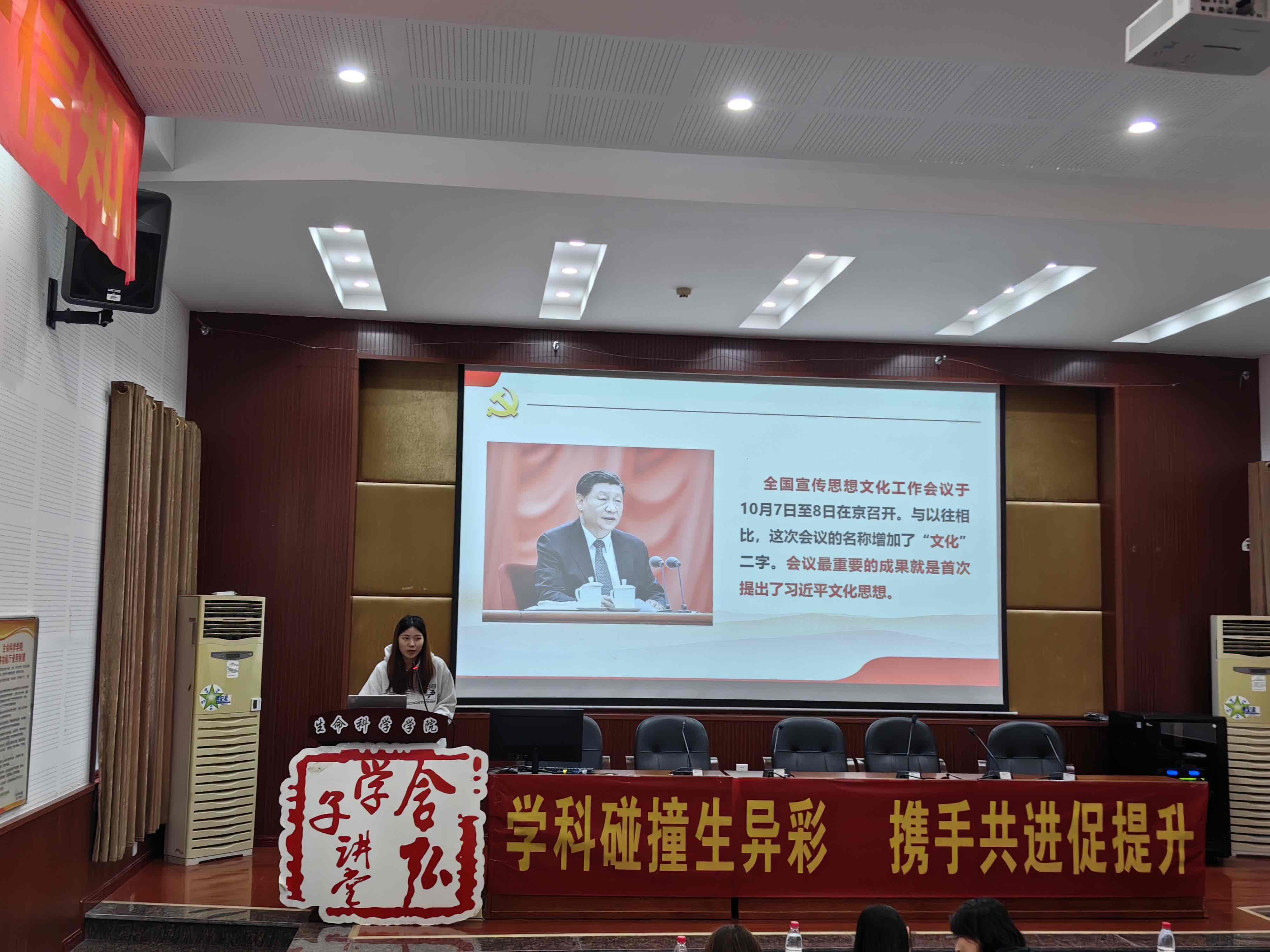 化学化工学院温馨同学以“学习贯彻习近平新时代中国特色社会主义思想”为切入点,着重分析了习近平文化思想对于民族发展的重大意义。一个民族要走在时代前列,就一刻不能没有正确思想指引。作为当代研究生,我们要深入学习领会、坚决贯彻落实习近平文化思想,为全面建设社会主义现代化国家、全面推进中华民族伟大复兴提供坚强思想保证、强大精神力量、有利文化条件。