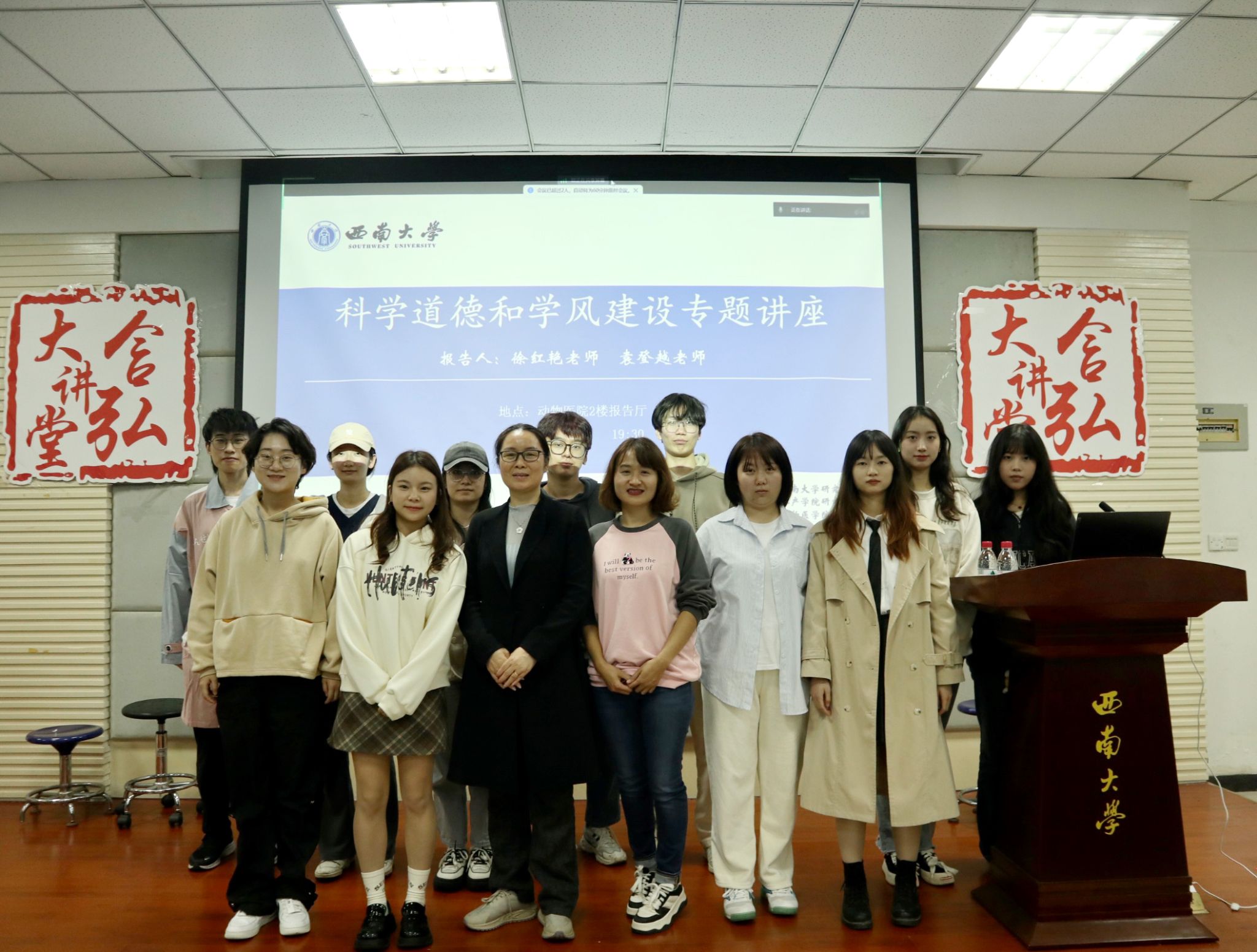 为切实加强研究生的科研作风和学风建设,11月9日晚,学院围绕底线教育——开展学术规范自学与学风建设讨论,弘扬学风正气,于动物医学院报告厅举办科学道德和学风建设专题讲座暨含弘大讲堂之“研途相伴,明灯引航”研途分享会。本次讲座邀请到学院教授、博士生导师徐红艳和袁登越老师担任主讲人。校研究生会代表、院研究生会、动物医学院研究生会以及两学院2021级、2022级、2023级研究生参加了此次讲座。