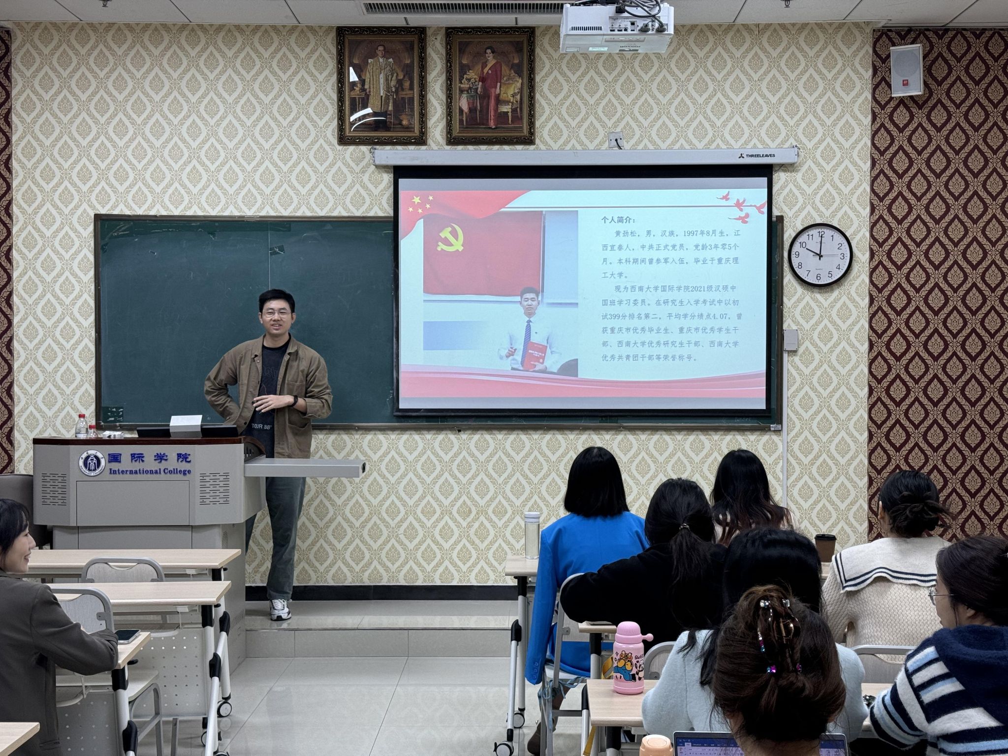 为深入学习贯彻习近平新时代中国特色社会主义思想和党的二十大精神,积极探索党建工作新思路、新举措,国际学院“紫云菁英”系列党建宣传活动将陆续对学院党建工作的经验做法进行宣传、推介,切实加强基层党建工作。2023年11月9日,由学院研究生会组织部牵头,在紫云楼210教室举办了2023年秋季学期第一期“紫云菁英”党建宣传培训活动——党的基本知识与入党流程。