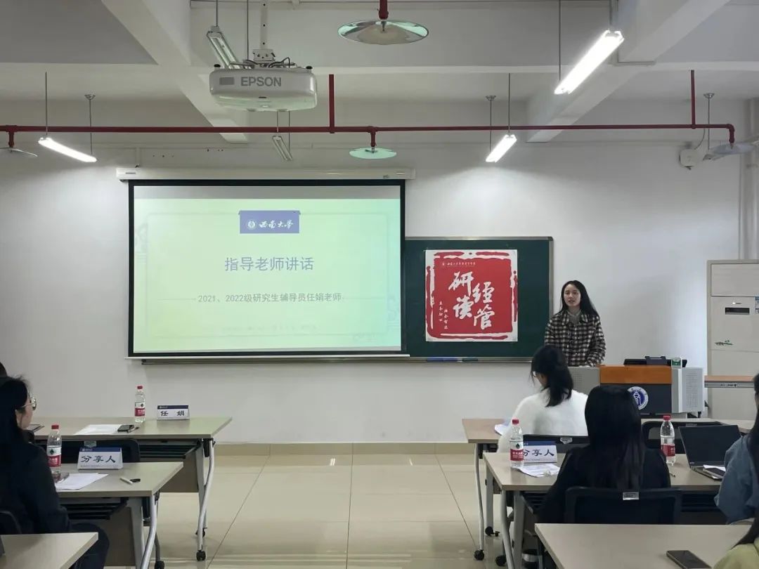经济管理学院研究生辅导员任娟老师对此次活动进行了总结。她充分肯定了四位同学的分享内容,并就活动的举办提出了相关的建议,为今后活动的开展指明了努力的方向。最后,任娟老师就本次读书会主题对同学们提出期望,希望同学们努力拓宽专业视野,不断发展完善自我。