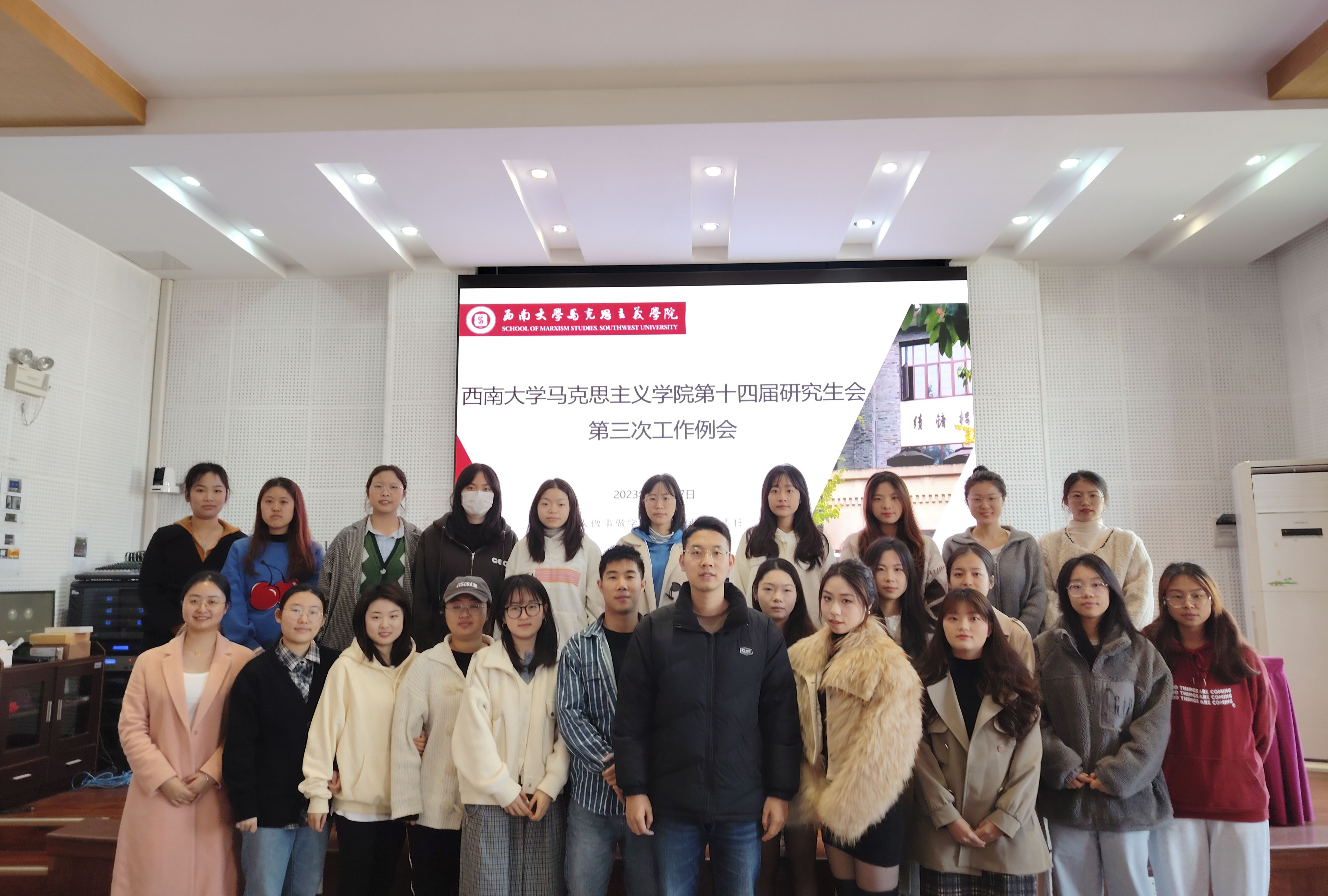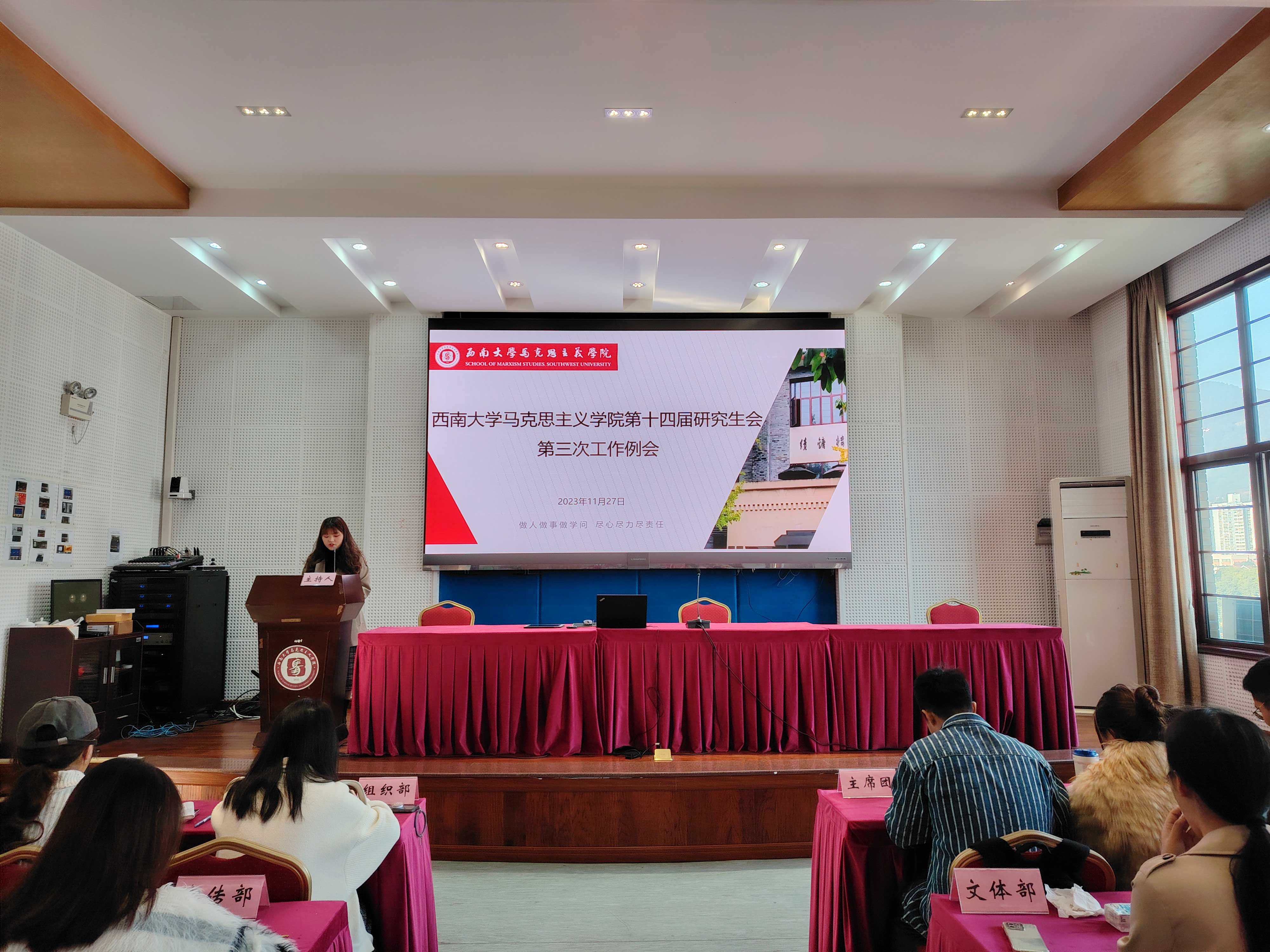 为推动我院研究生会工作顺利开展,提升全体成员理论素养,同时为总结研究生会工作情况,明确下一步工作规划,加强各部门之间的沟通与交流,2023年11月27日,betway西汉姆联马克思主义学院第十四届研究生会理论学习暨第三次工作例会于马克思主义学院501报告厅顺利召开。马克思主义学院研究生辅导员黄林、第十四届研究生会全体成员参加。此次会议由第十四届研究生会综合办工作人员谭亚婷主持。