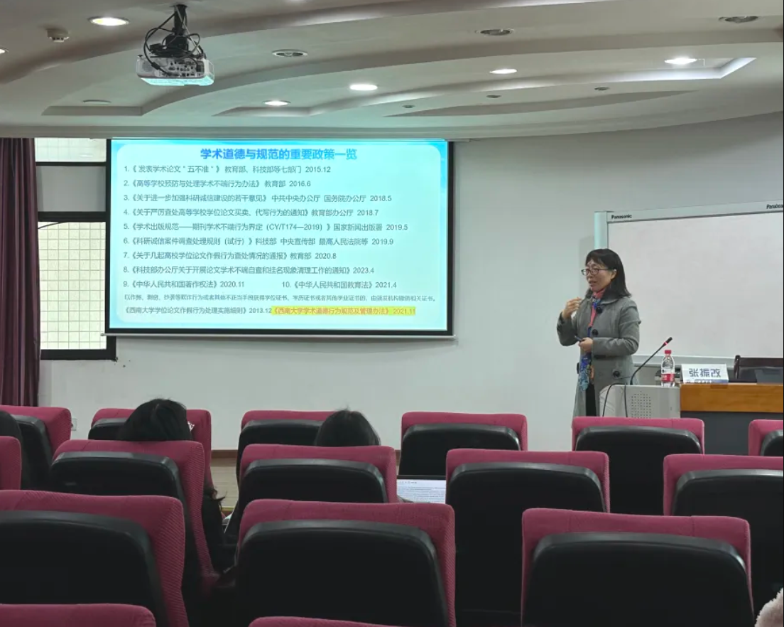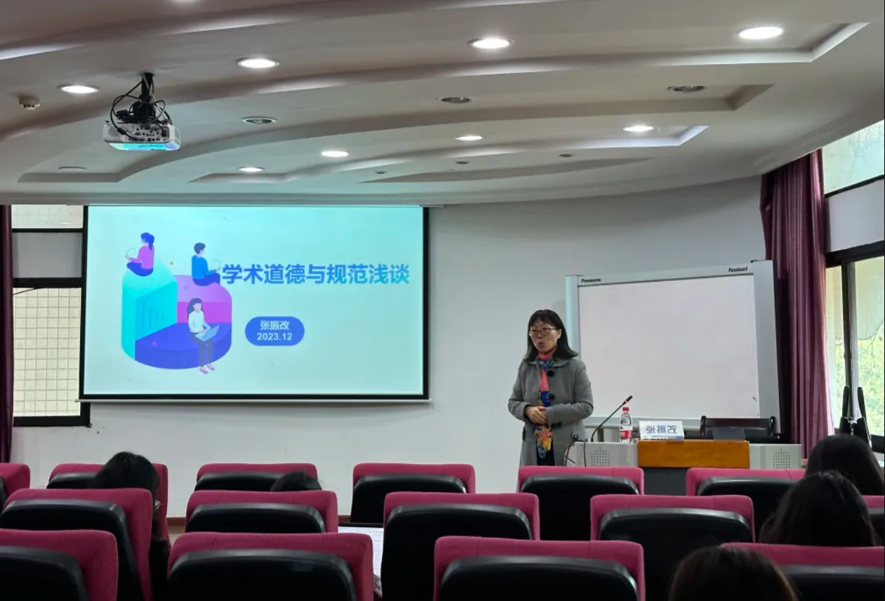 2023年12月7日,为引导广大研究生在学术创新的同时恪守学术道德,遵守学术规范,锻造学术品格,学部研会特邀张振改副教授为全体研究生开展了以“学术有‘道’‘诚’风起航”为主题的专题讲座。此次讲座是学部“科学道德与学风建设”活动专题的重要部分,也是学校研究生科学道德和学风建设月系列活动的讲座之一。