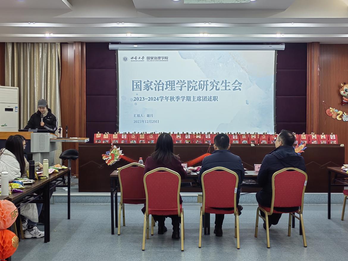 为深入学习贯彻党的二十大精神,进一步落实团中央关于高校共青团、学生会组织深化改革的要求,12月29日,国家治理学院2023年度研究生会述职大会于绩镛楼3326室召开。学院党委书记刘勇,学院党委副书记、纪委书记陈丽华,学院党委副书记李长松及研究生会全体成员参与了本次会议。