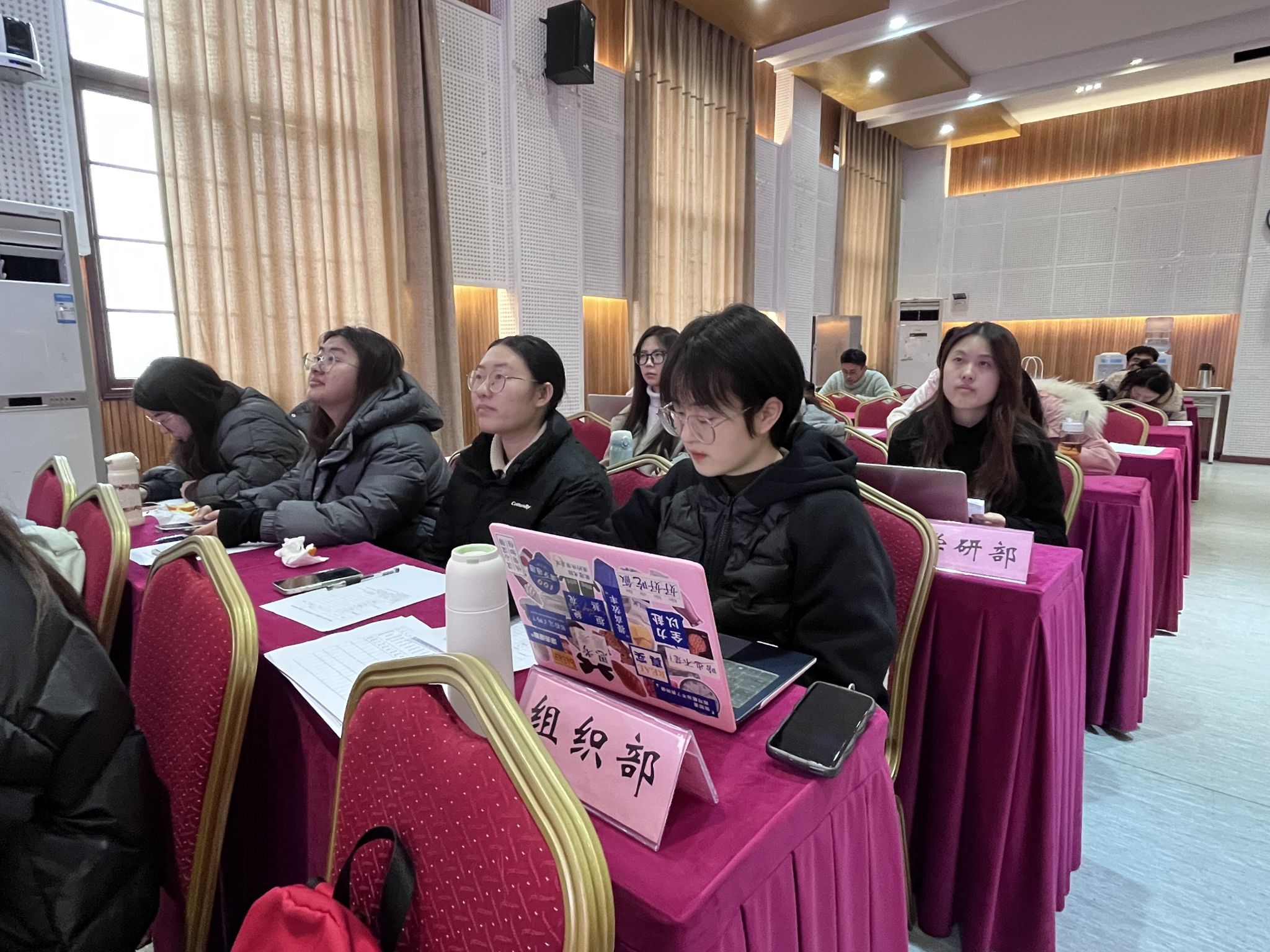 首先,主席团三位成员围绕学期工作概述、工作总结反思和未来发展规划三个部分进行述职。在工作概述方面,张干指出研会过去一年主要围绕持续深化改革、加强文体建设、聚焦理论学习、赓续科研传统四个主题开展工作;在工作总结与反思方面,邹艾岑认为研会工作在组织能力、沟通能力、团队合作等方面有待提高;在未来发展规划方面,骆雪洁认为研会应当以加强业务知识学习、加强部门沟通和扩大工作辐射面作为切入点进行提升和改进。