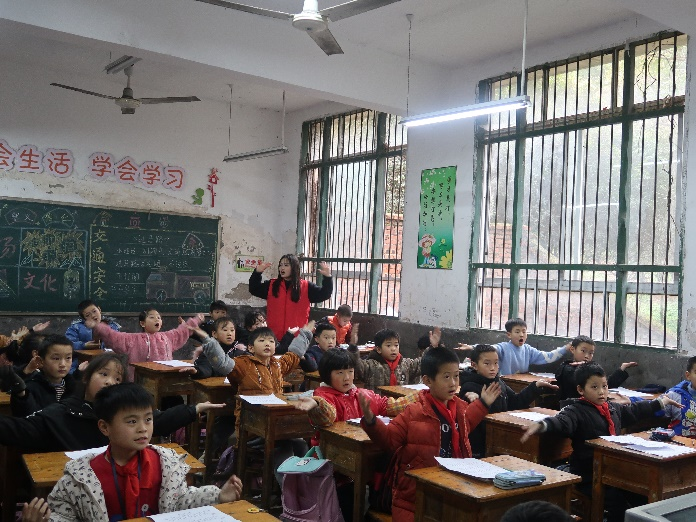图3:队员在教孩子们唱《在灿烂阳光下》