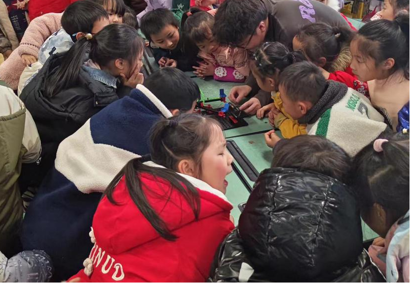 随后,工程技术学院的队员拿出了从实验室带来的慧鱼积木,帮助小朋友培养动手能力以便更好地了解机械知识原理。慧鱼积木原本是betway西汉姆联工程技术学院本科生的课程教具,对小朋友们来说拼装出成品是有一定困难的。但是,在实践队队员的细心指导和带领下,一个个成品顺利拼装并展示在桌面上,现场发出阵阵惊叹和欢声笑语。